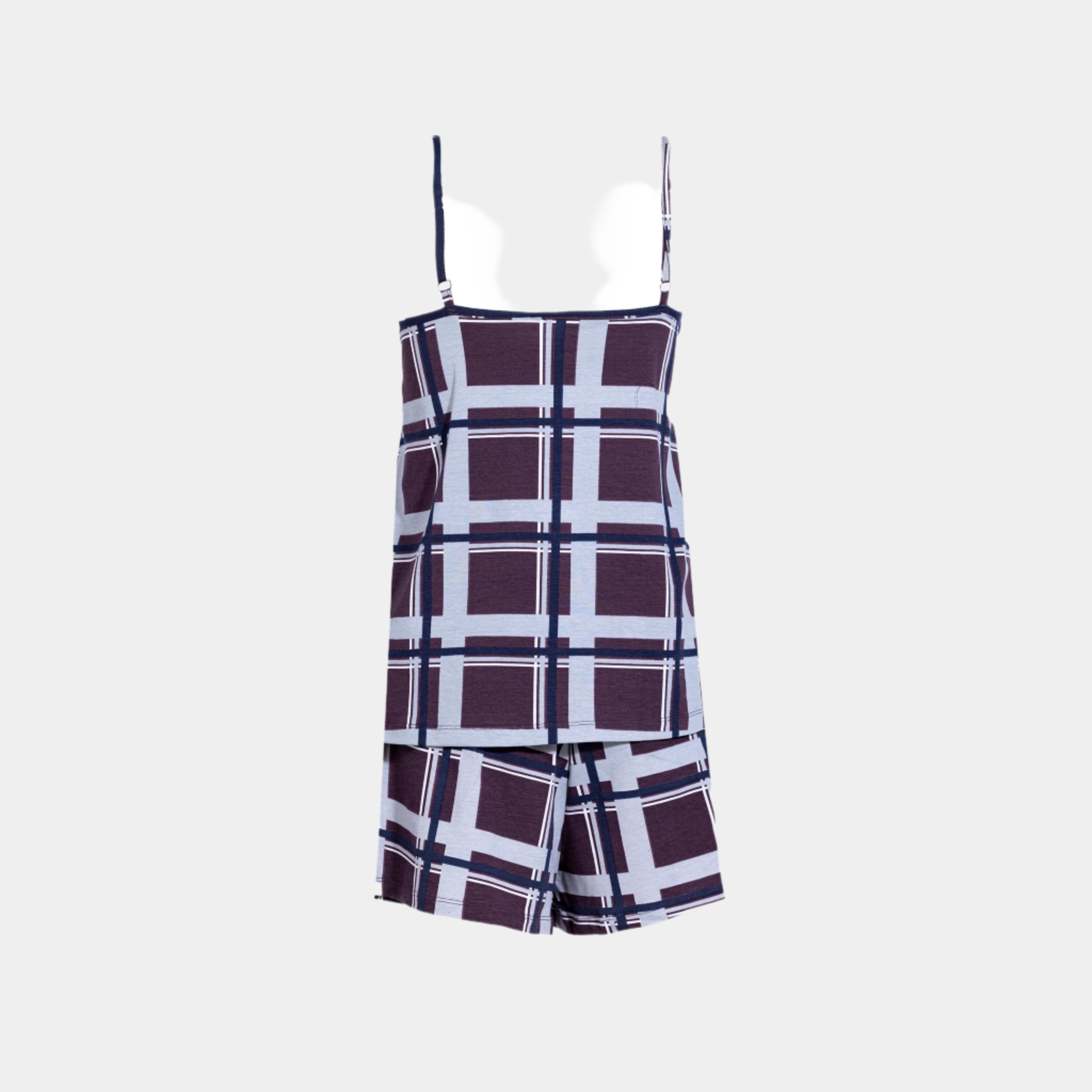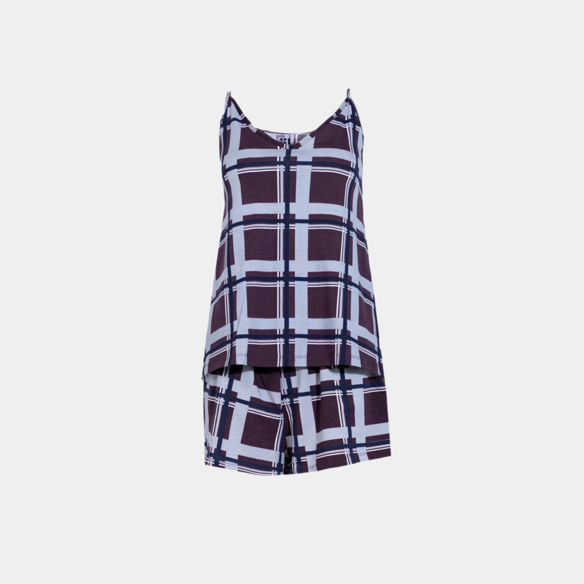 بيجامة حمالة شورت منقوشة باللون العنابي