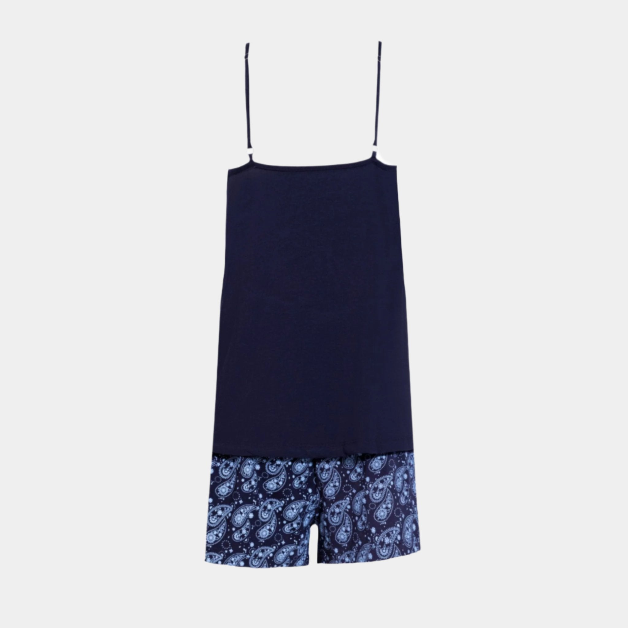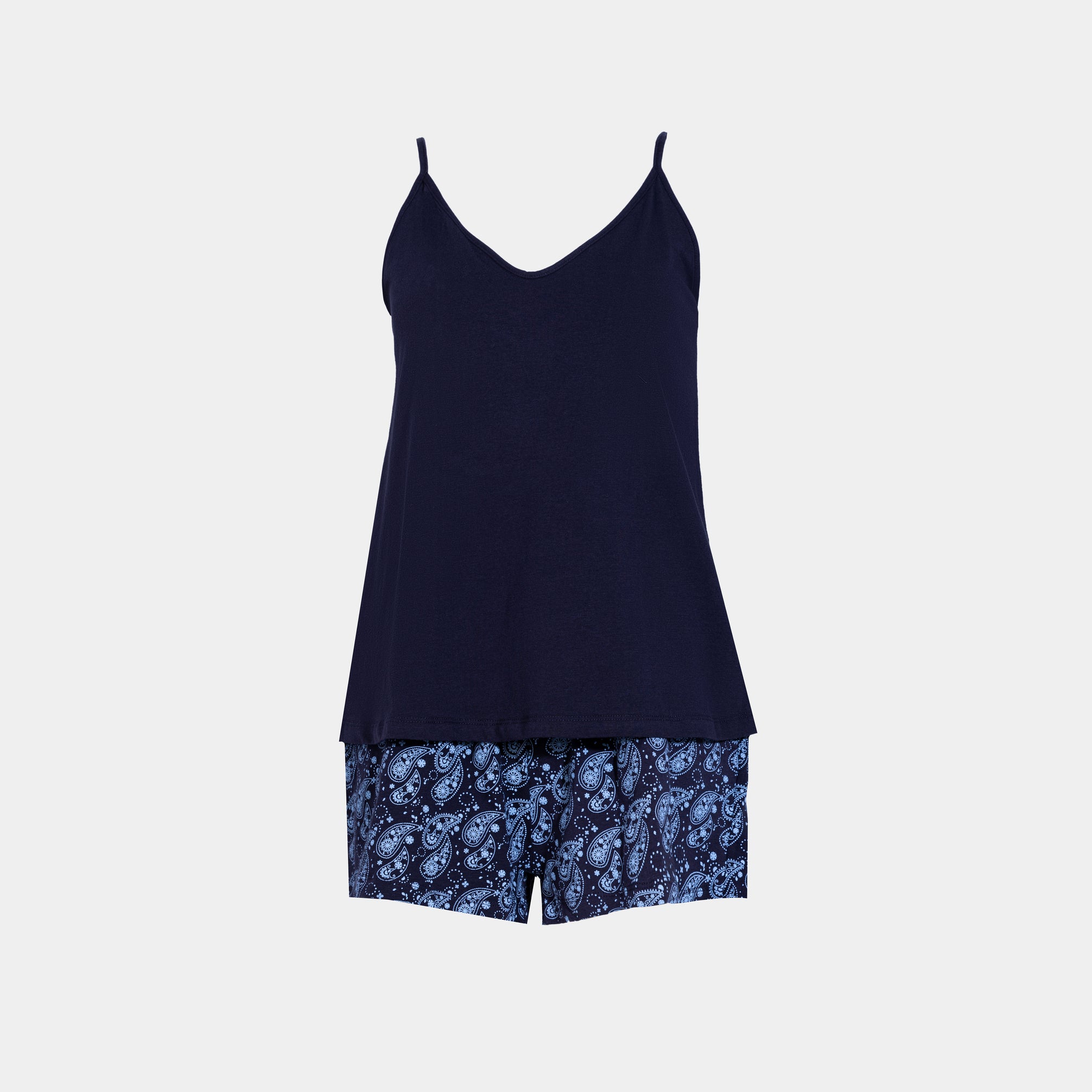 بيجامة چل سليب مع شورت أزرق داكن بيزلي للنساء، قطعة واحدة، قطن جيرسي لايكرا مفرد