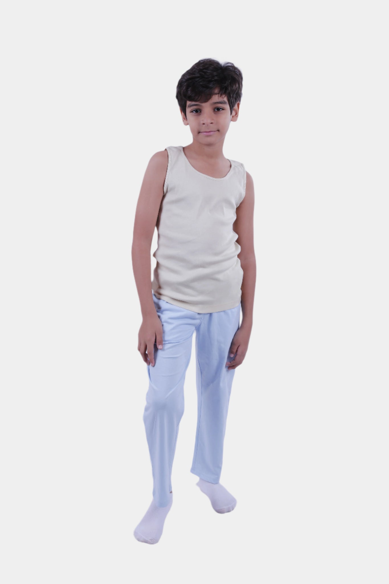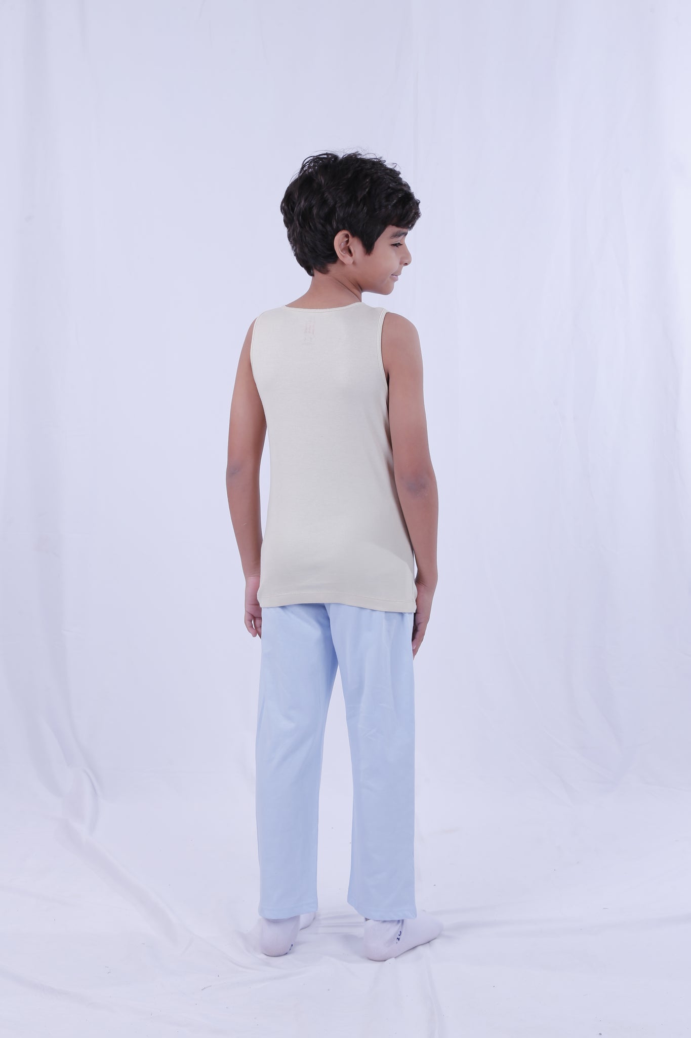 This white cap gray boy tank top is made of 100% cotton rib for maximum comfort and breathability. Perfect for ages 2 to 12 years, this tank top is a versatile and stylish addition to any child's wardrobe. Stay cool and trendy with this must-have piece.