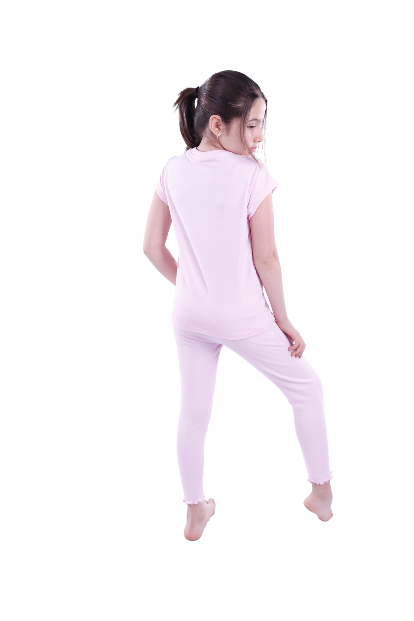 Girls Short Sleeve Pajama with Rib Legging - Ballerina