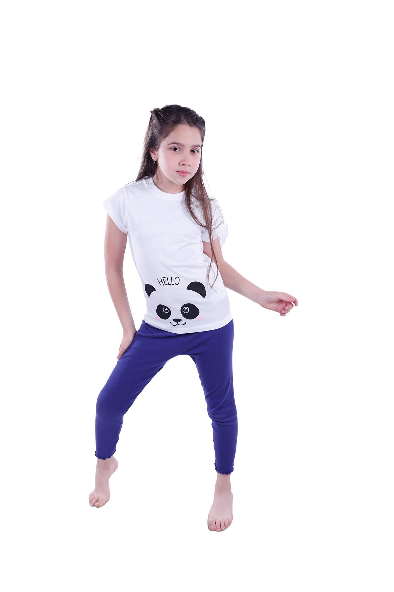 Girls Short Sleeve Pajama with Rib Legging -Bright White