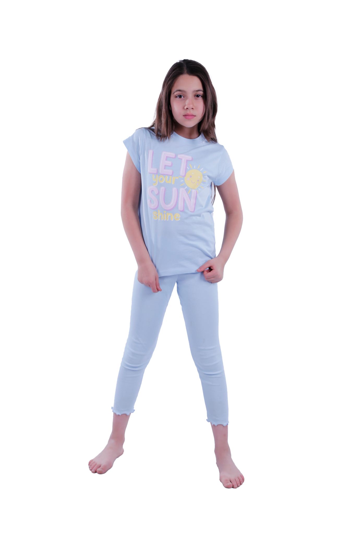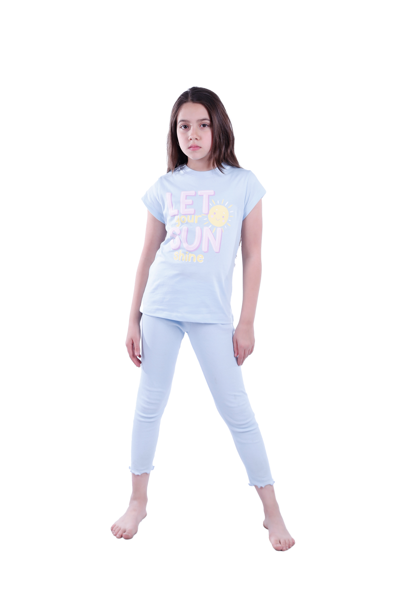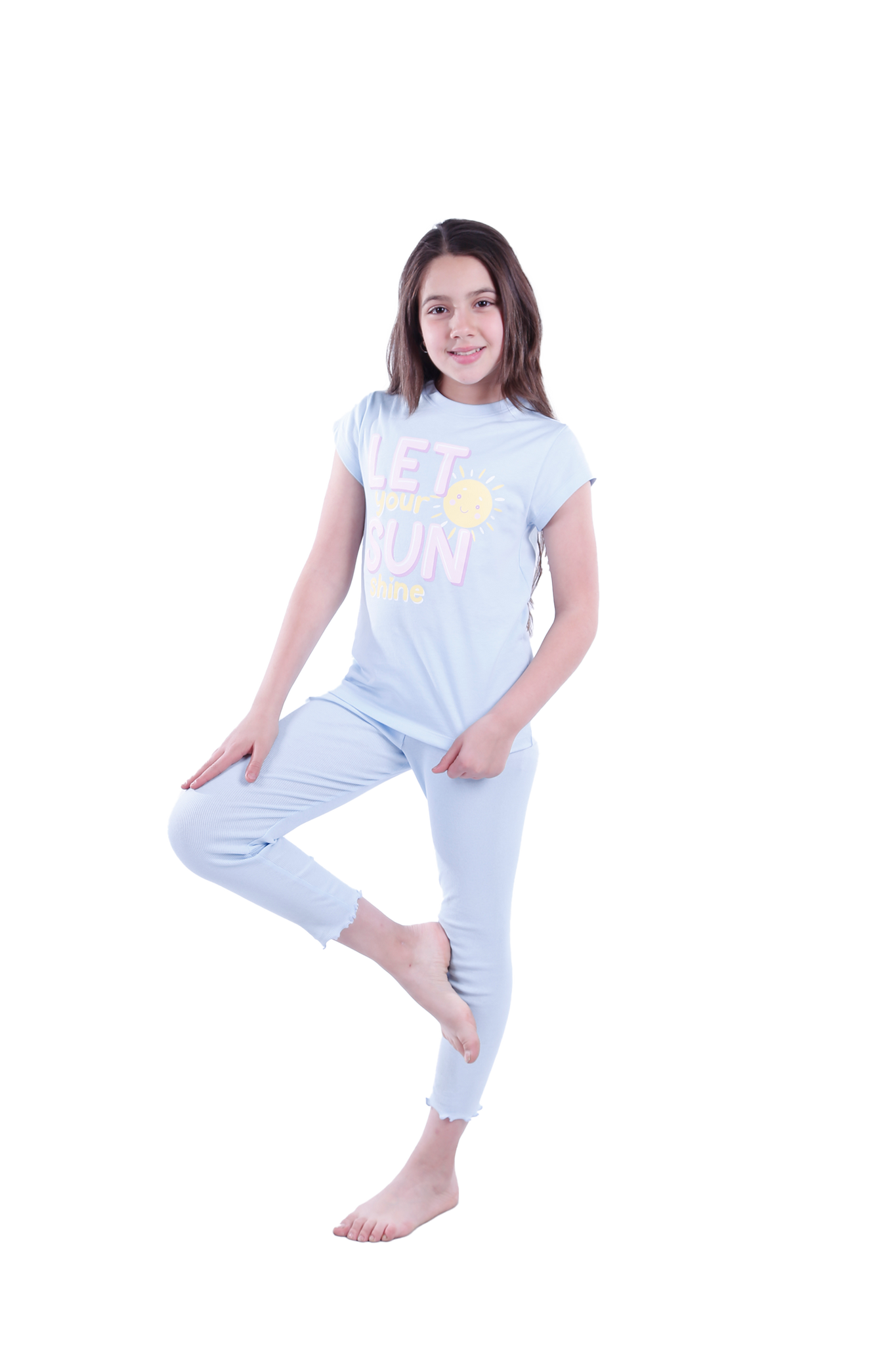 Girls Short Sleeve Pajama with Rib Legging - Nantucket Breeze