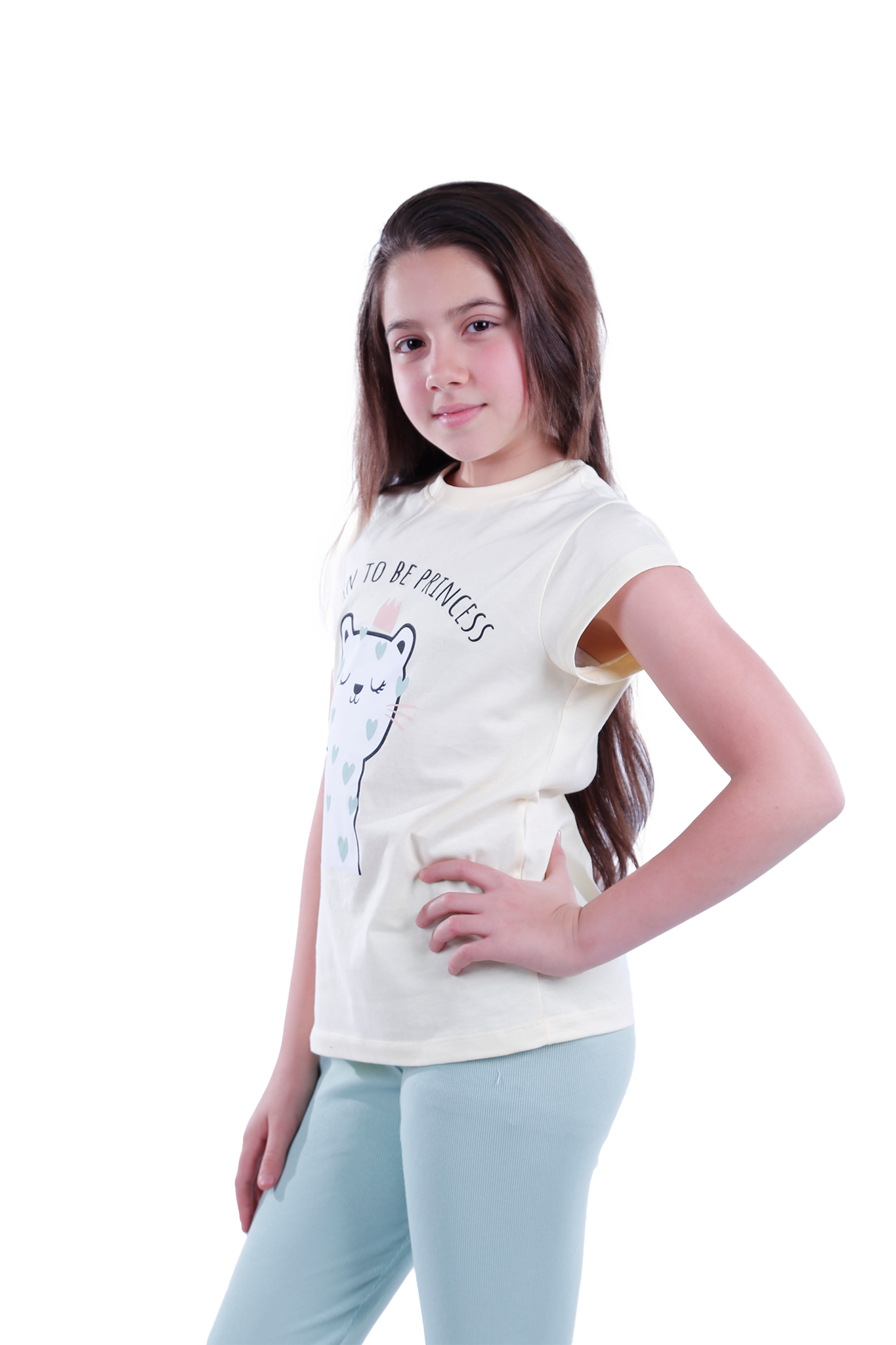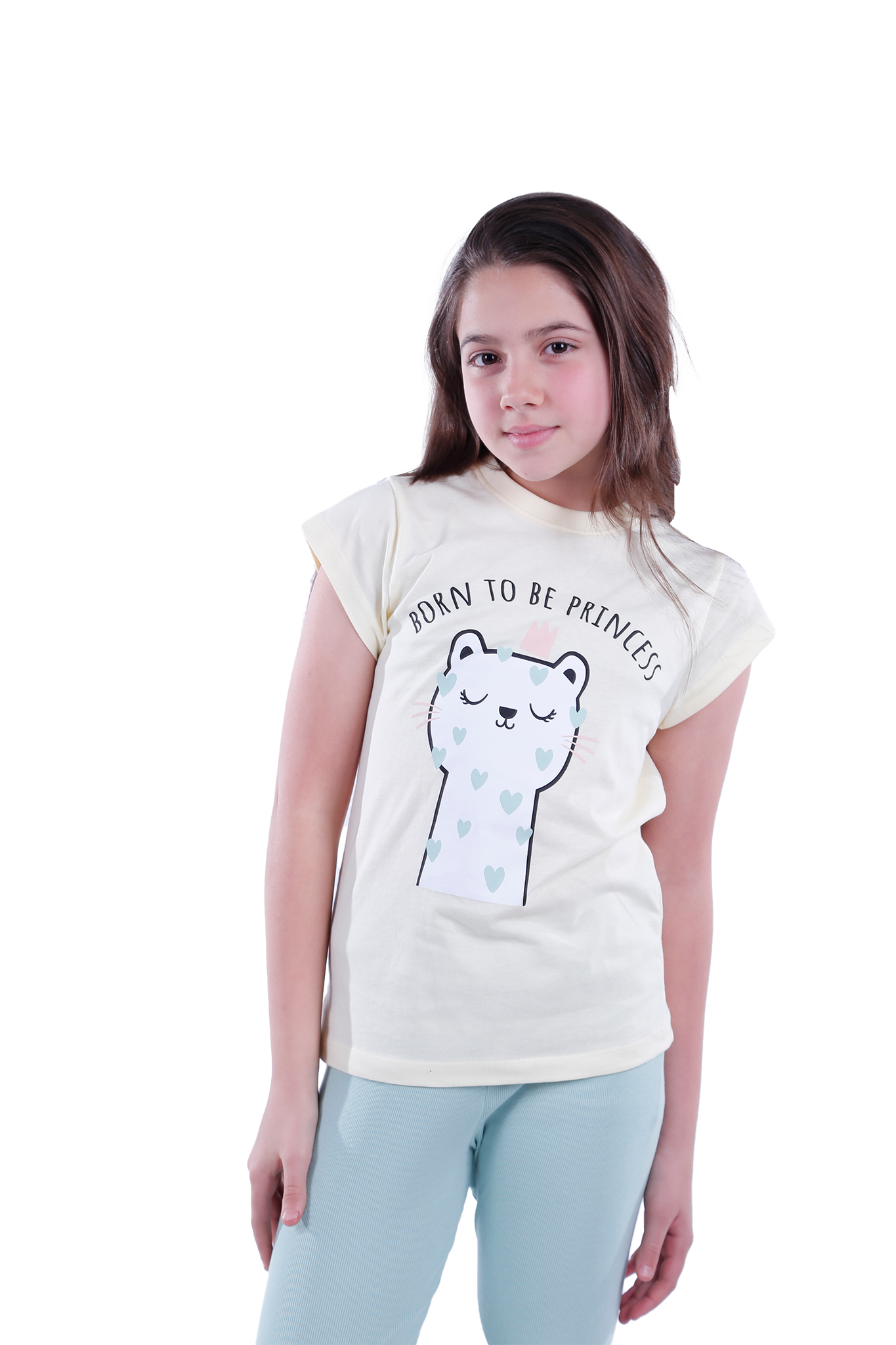 Girls Short Sleeve Pajama with Rib Legging - Transparent Yellow