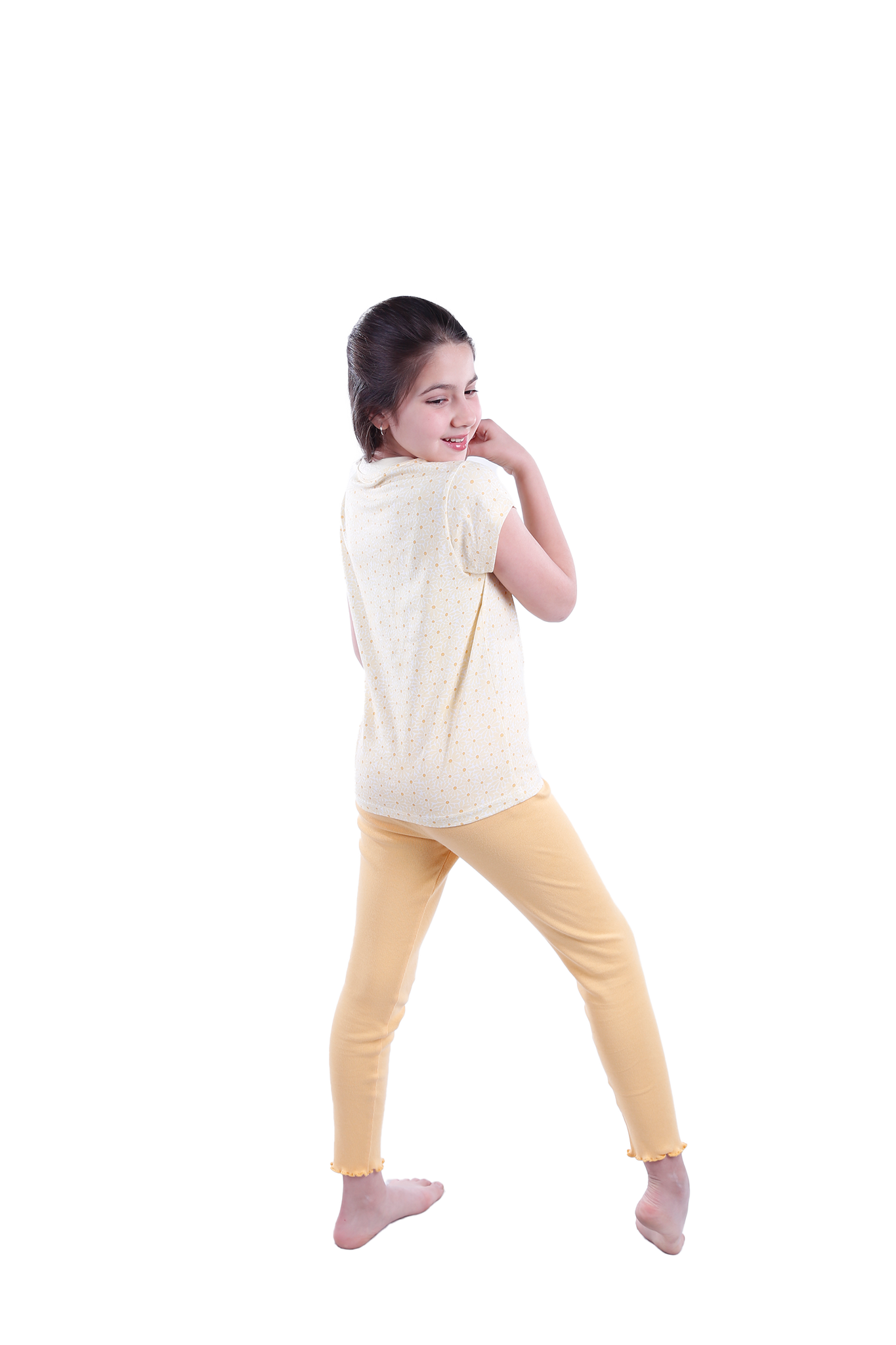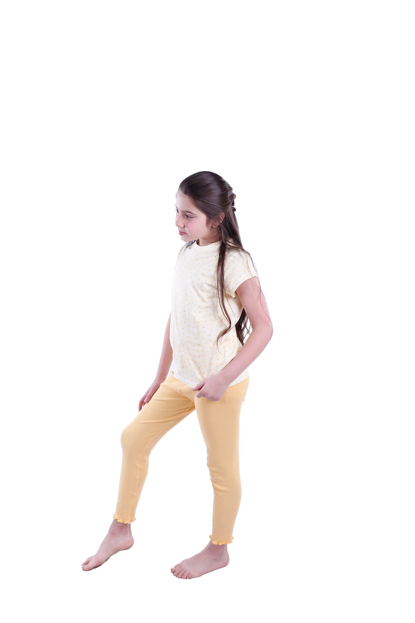 Girls Short Sleeve Pajama with Rib Legging - Transparent Yellow Sun Flower