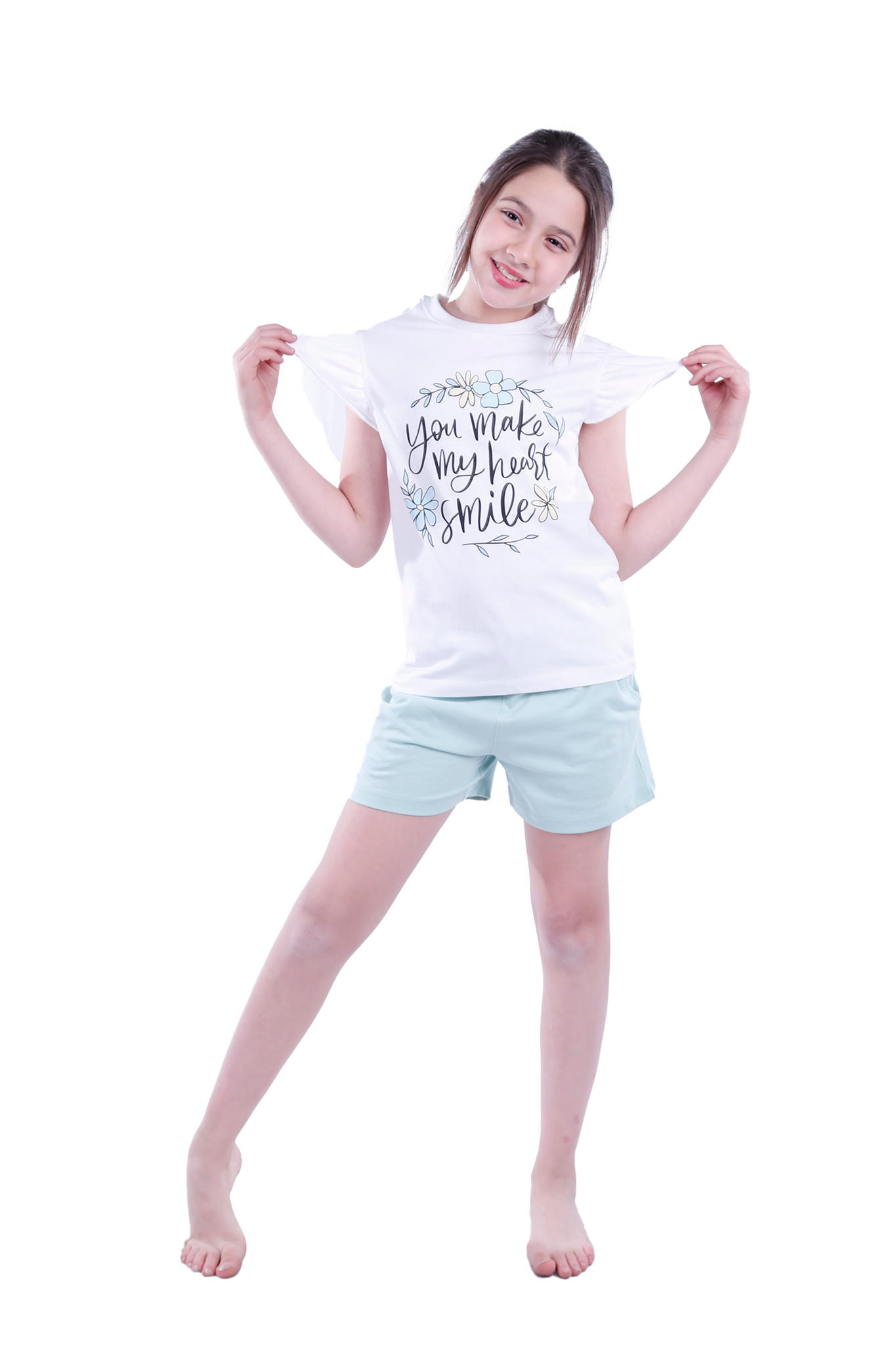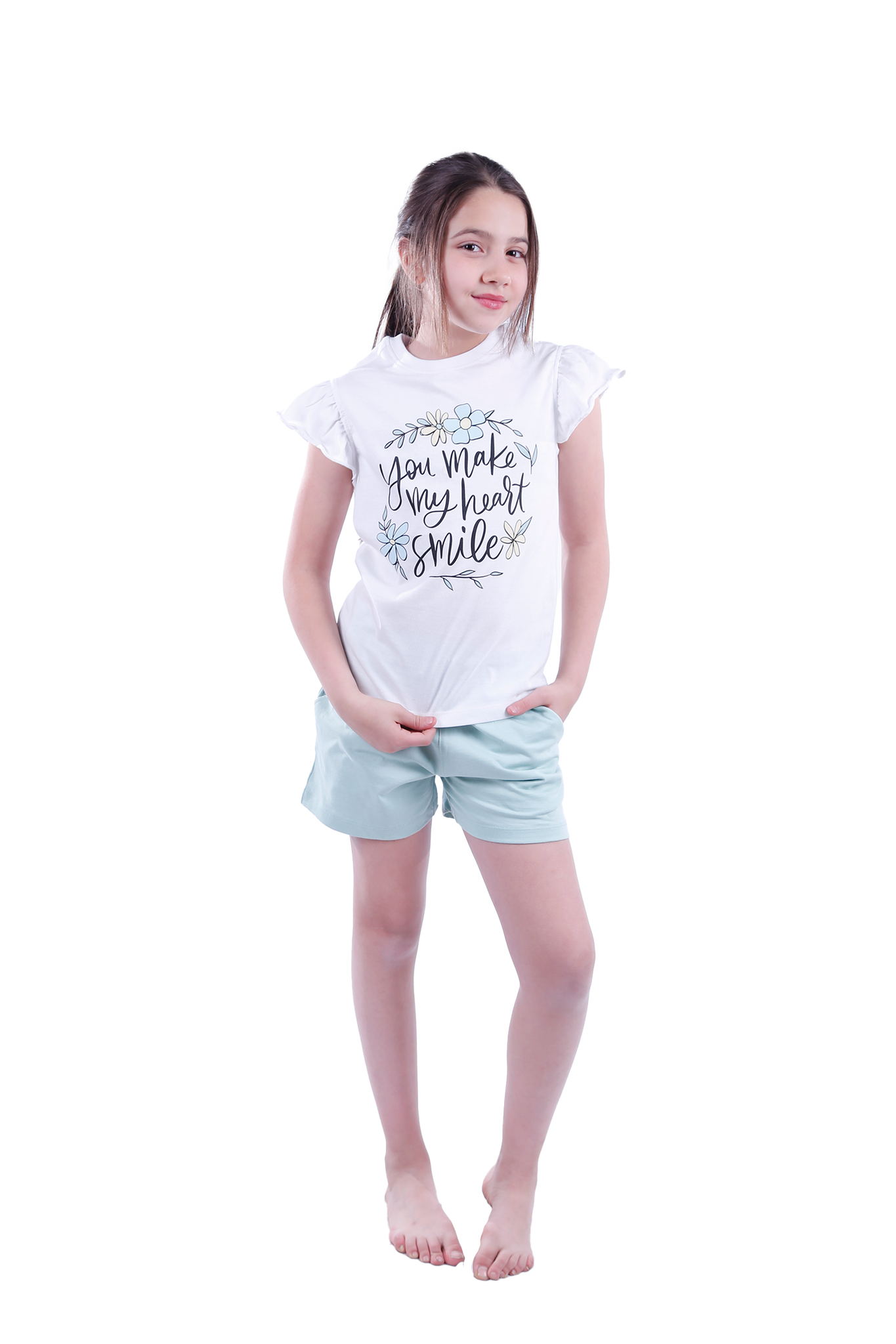 Ensure your daughter's comfort with the Girls Short Sleeve Pajama with Shorts, crafted from 100% Cotton Single Jersey for ultimate softness and breathability, perfect for sleeping or lounging.
