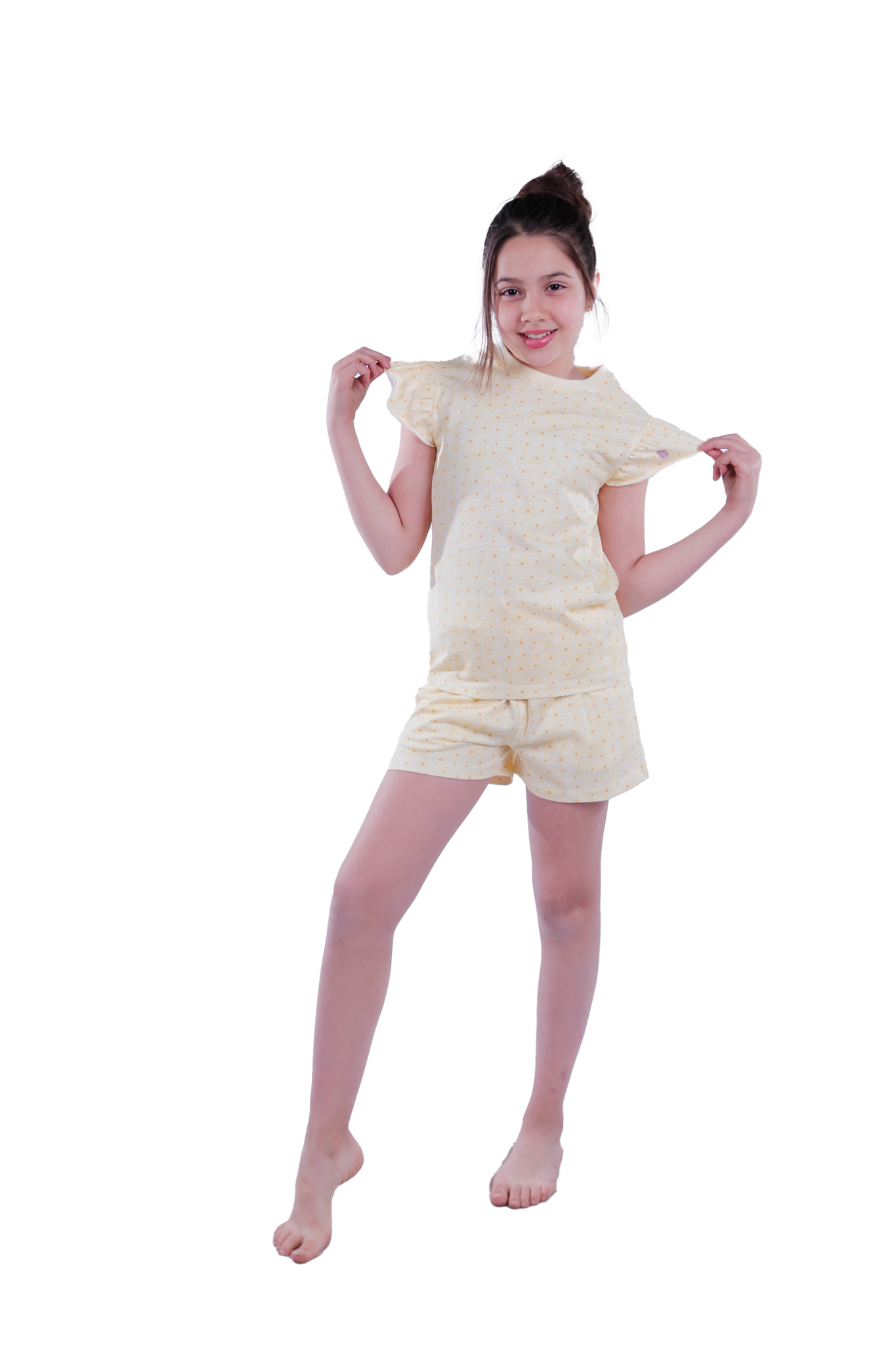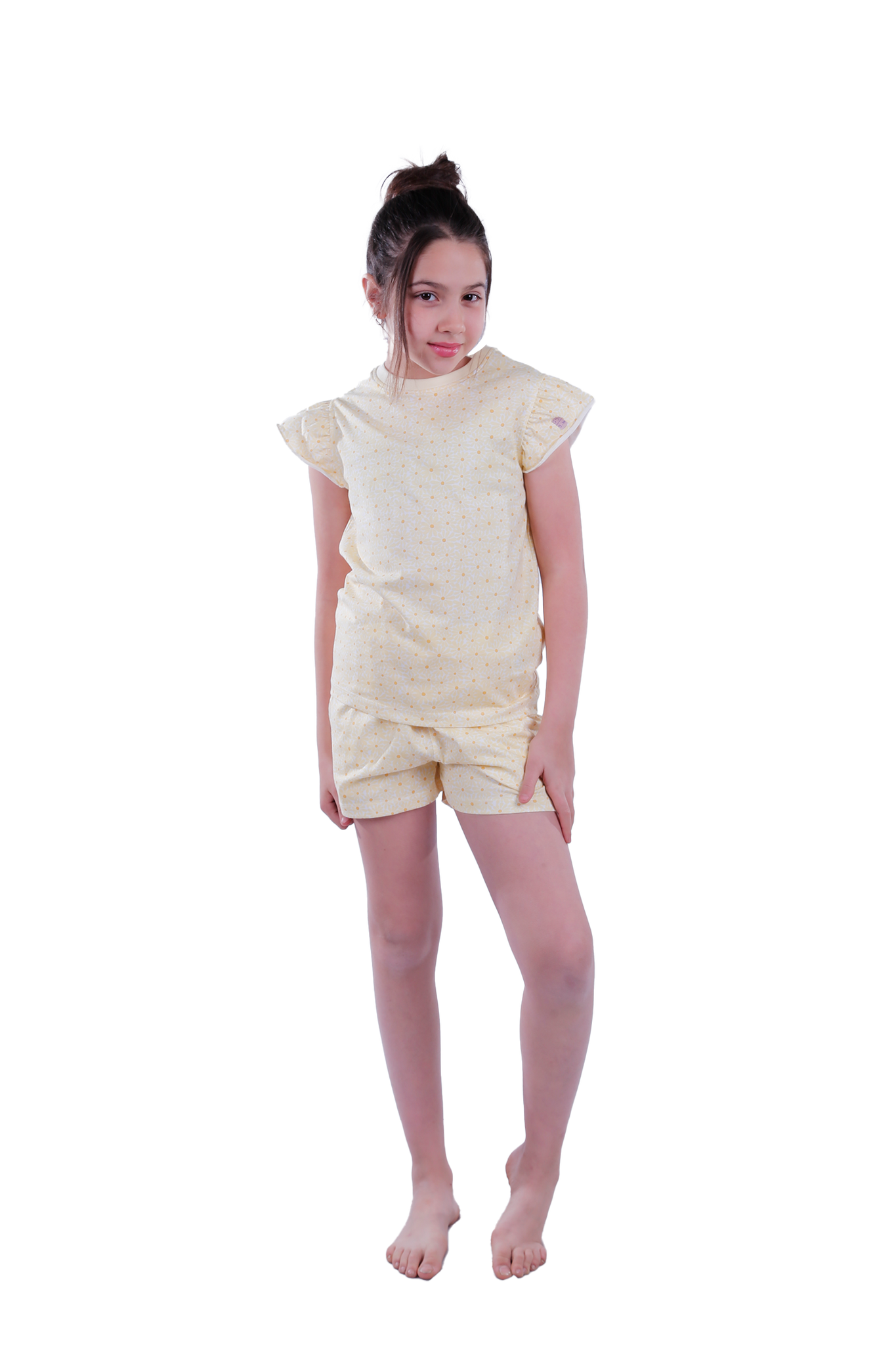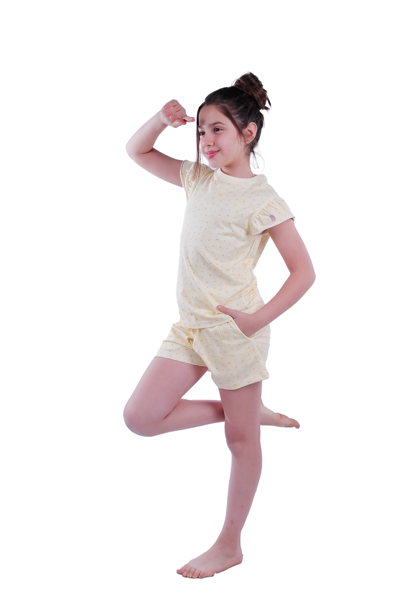 Girls Short Sleeve Pajama with Shorts - Transparent Yellow Sun Flower