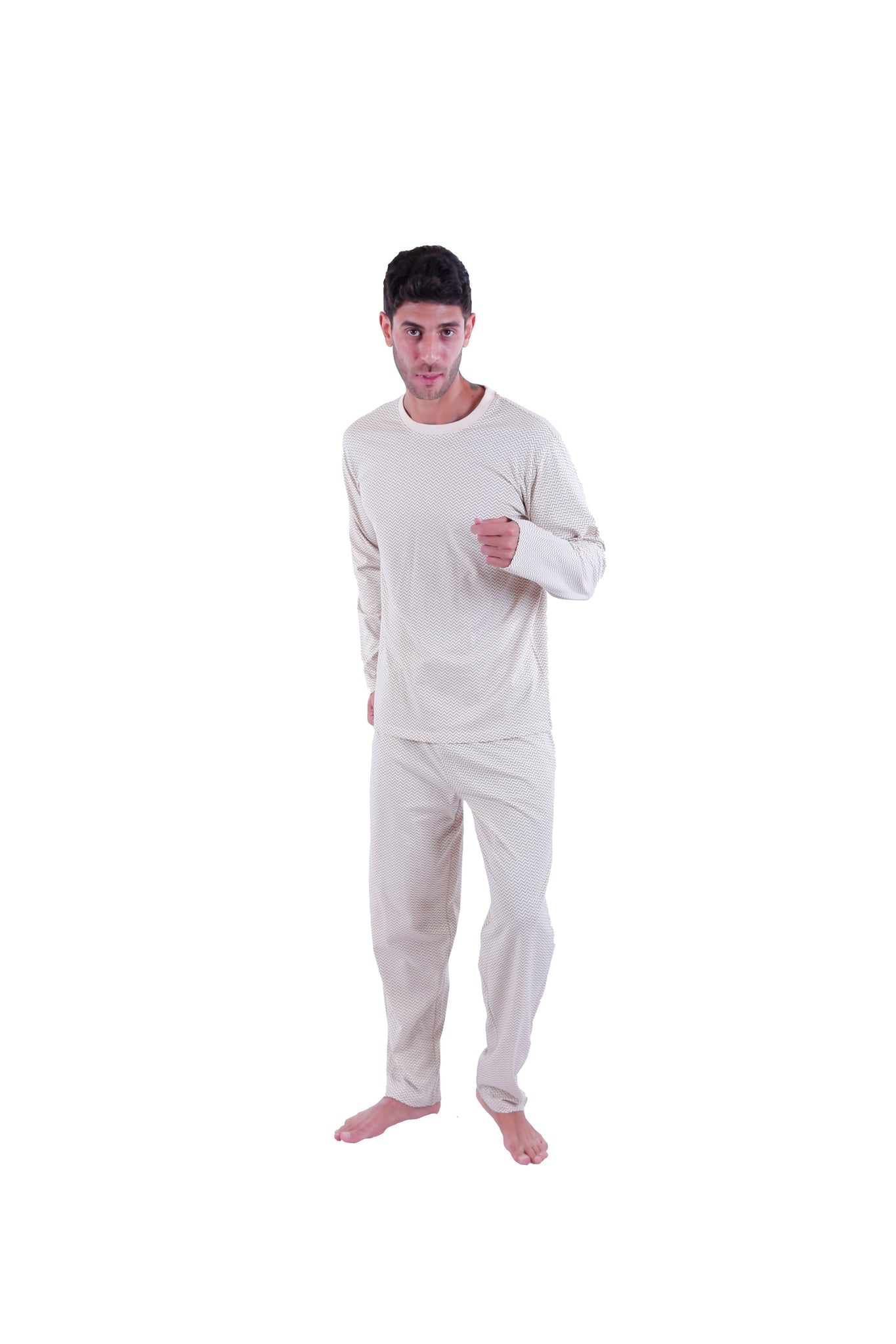 Men Long Sleeve Pajamas with PANTS Black Brown Chevron