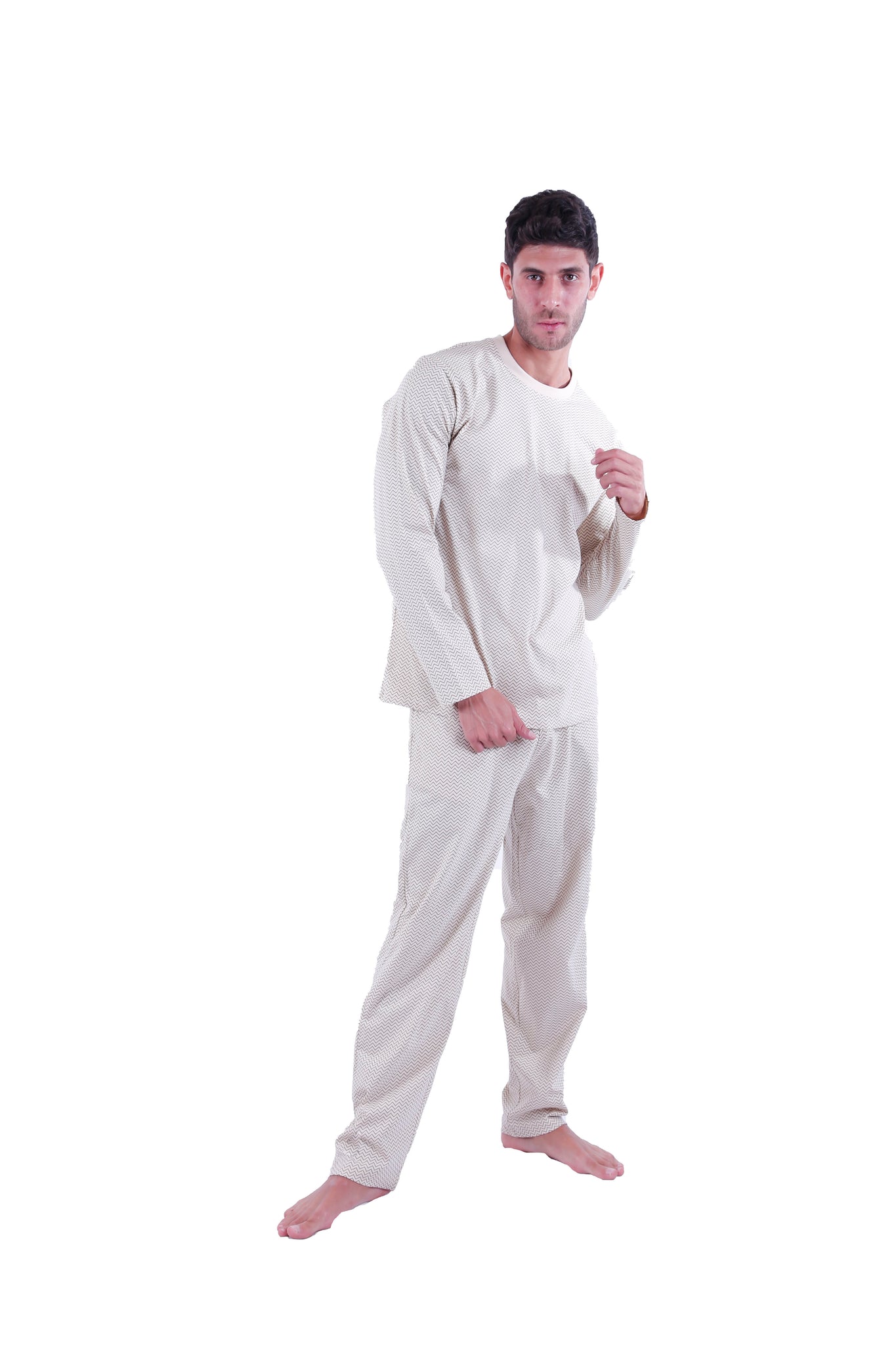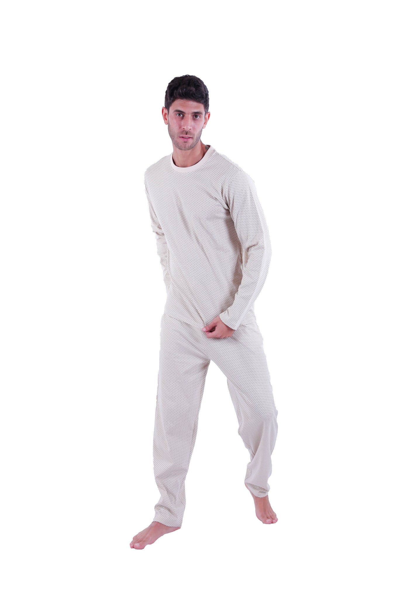 Men Long Sleeve Pajamas with PANTS Black Brown Chevron , Single Jersey Cotton