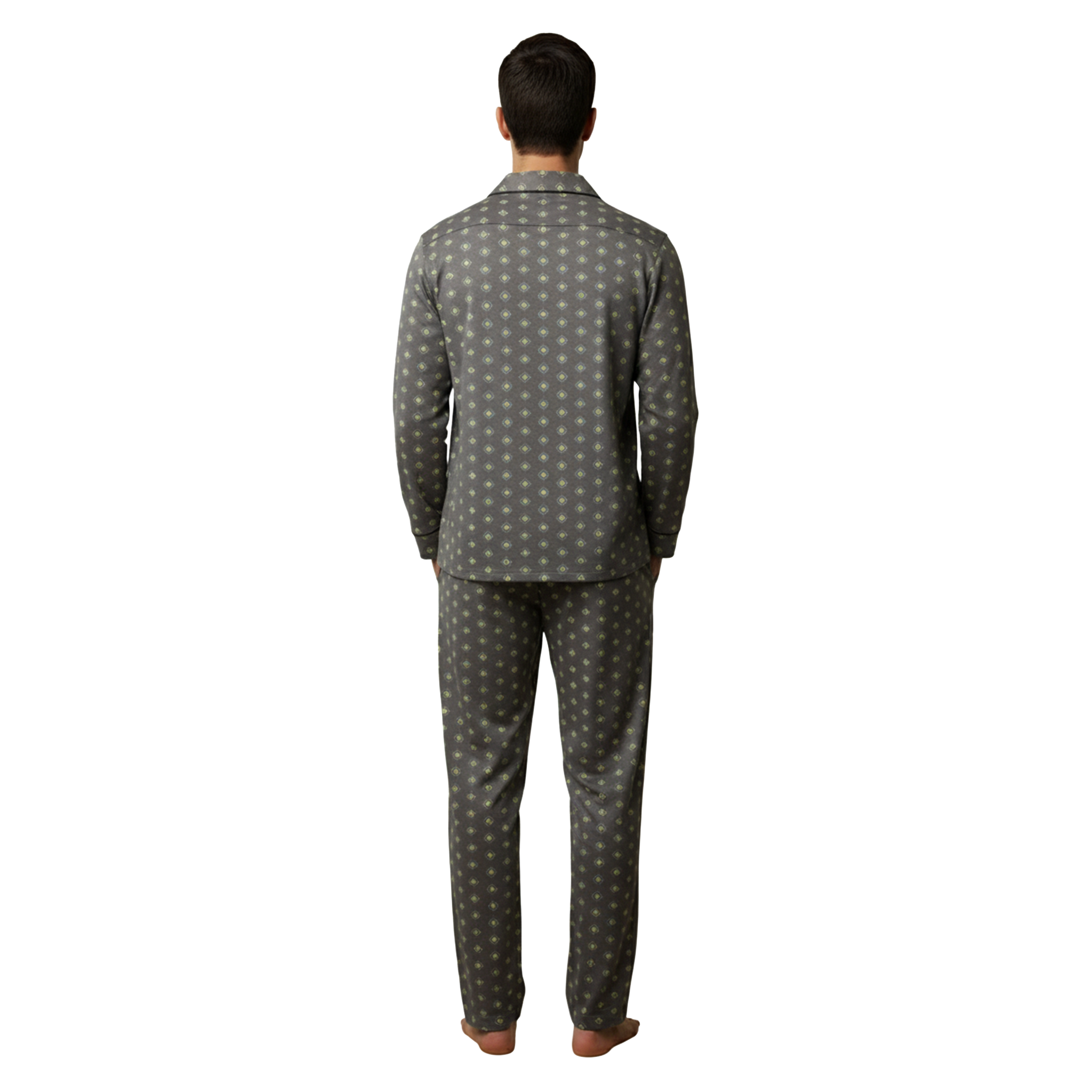 soft 100% cotton brushed fleece for superior insulation and comfort. This premium pajama set features a classic button-up top with a stylish Grey Kite print, paired with matching warm bottoms—perfect for cold nights, home relaxation, and winter lounging. Designed for maximum coziness without sacrificing style.