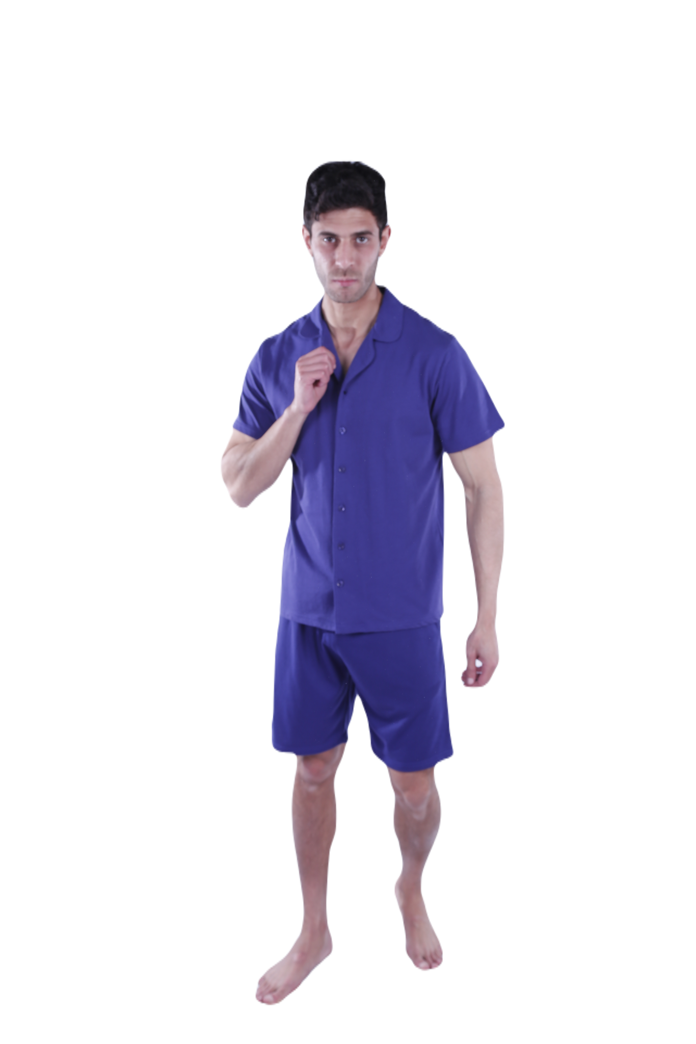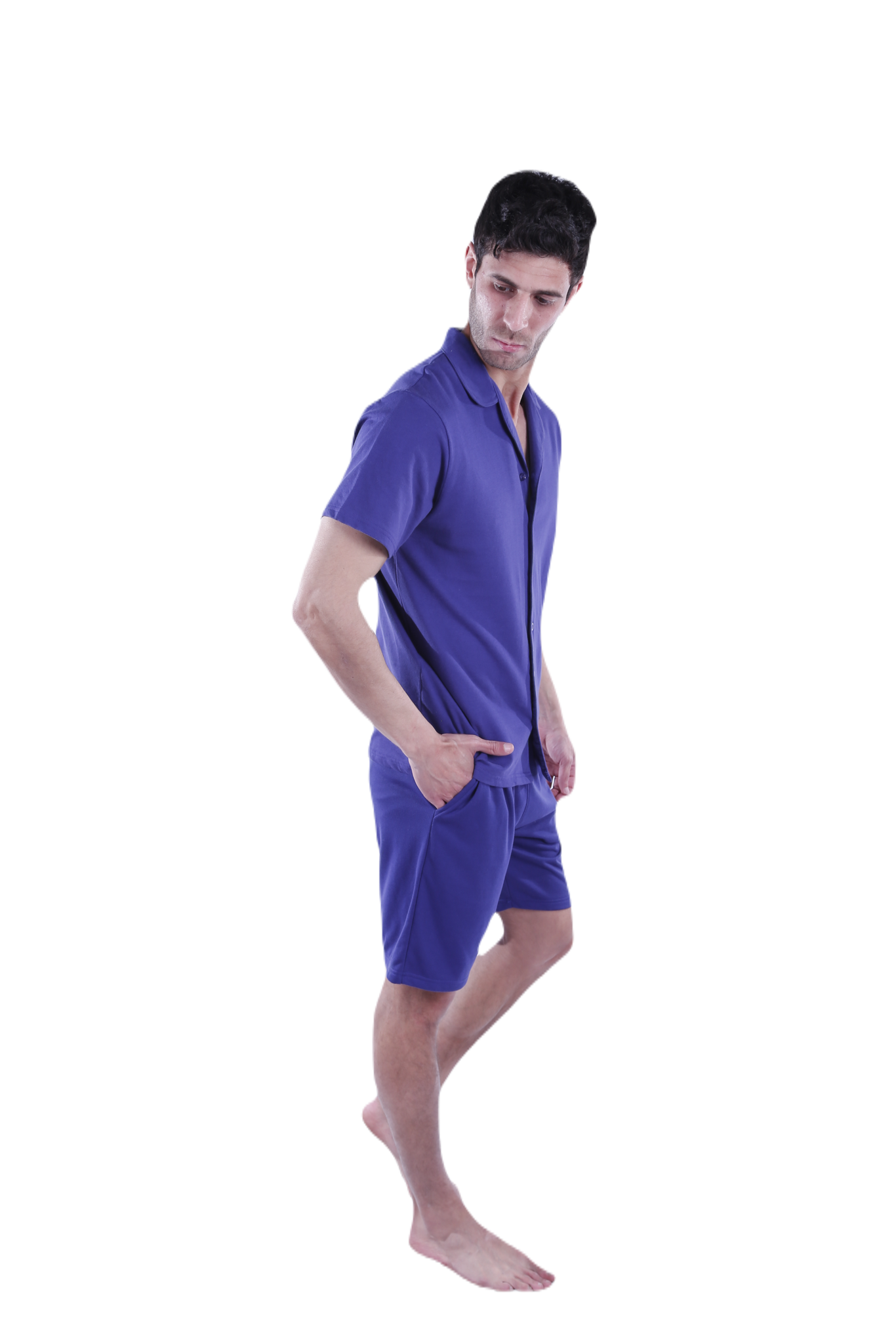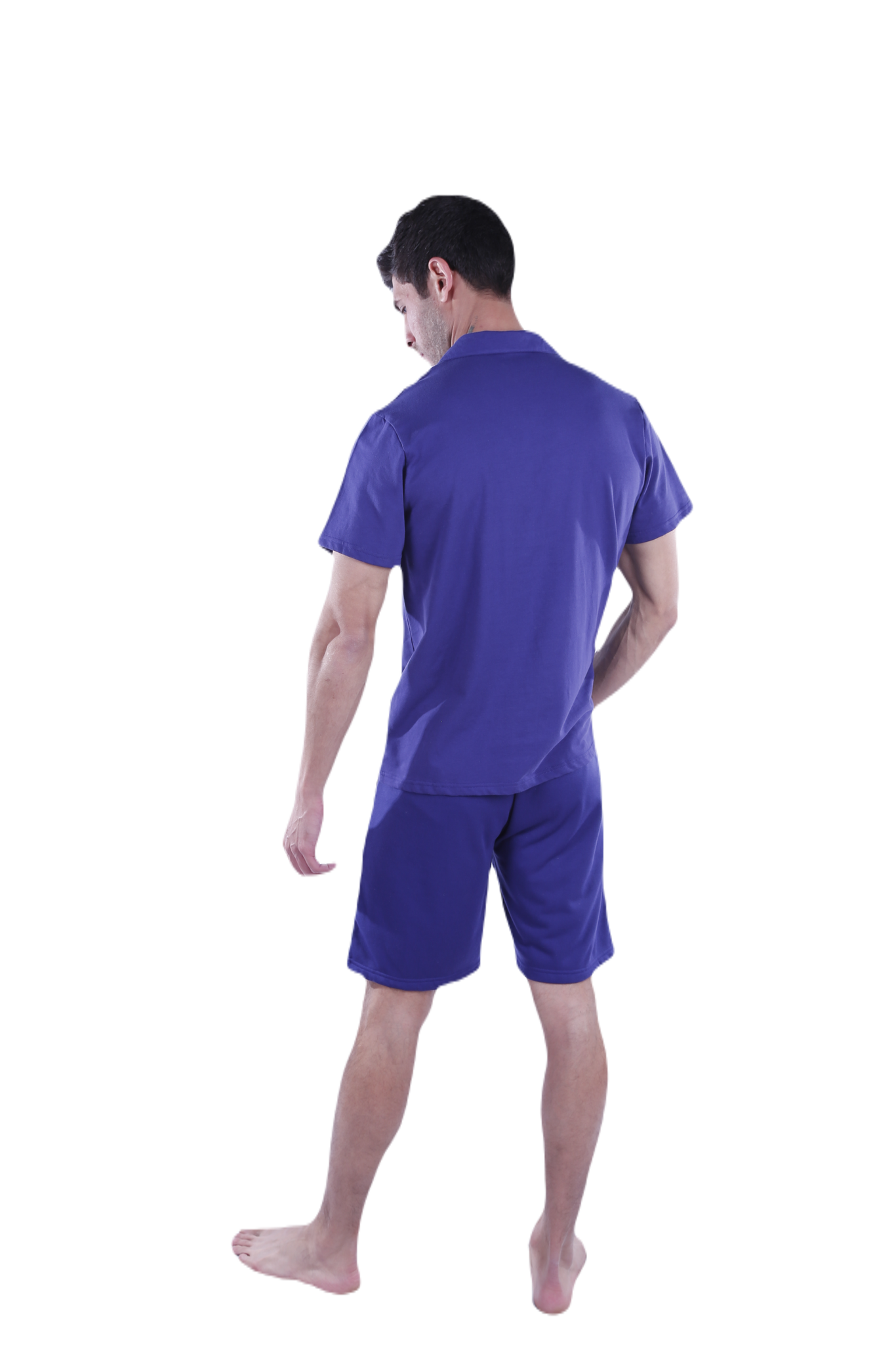 Men Short Sleeve Pajama with Button - Blue Depths