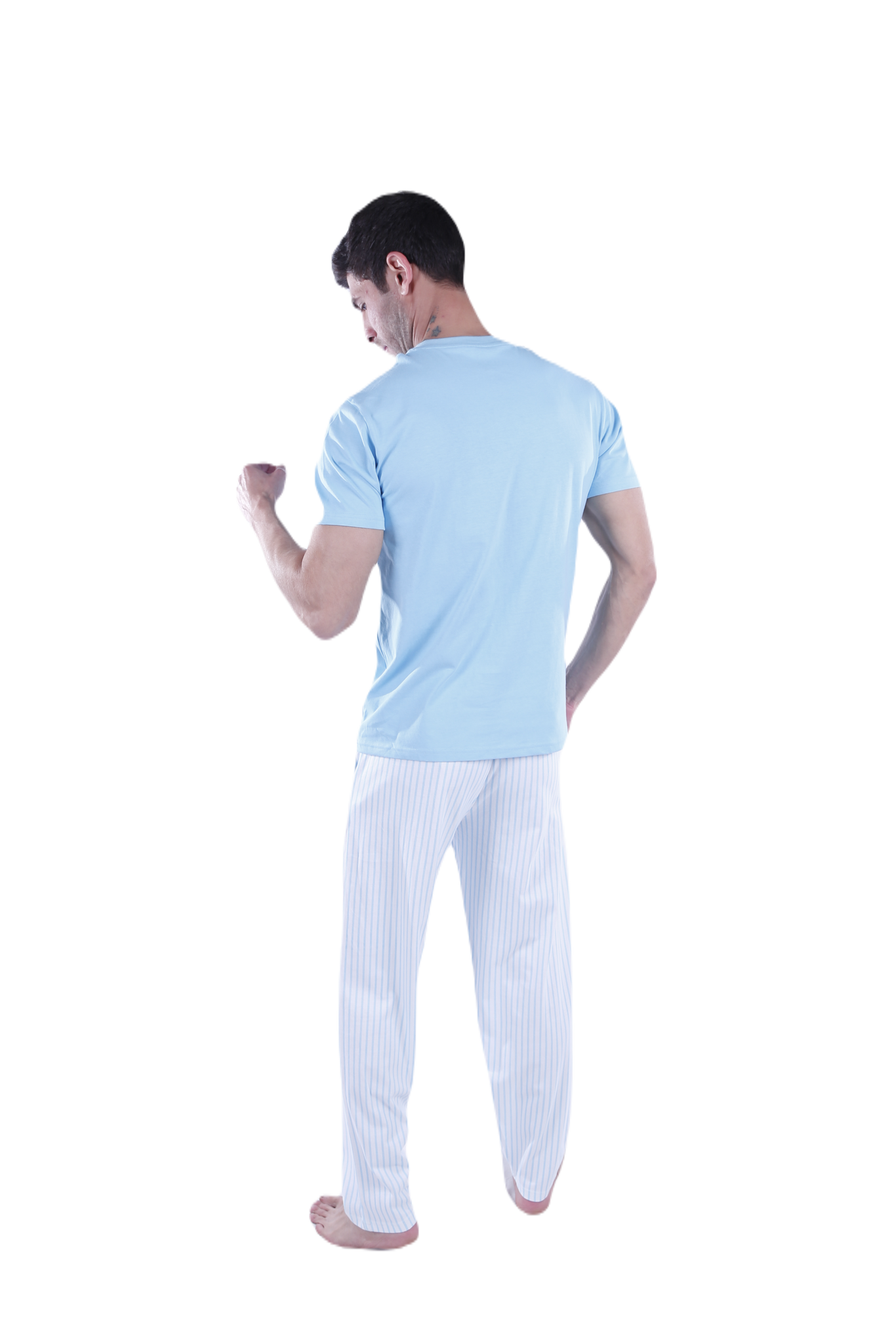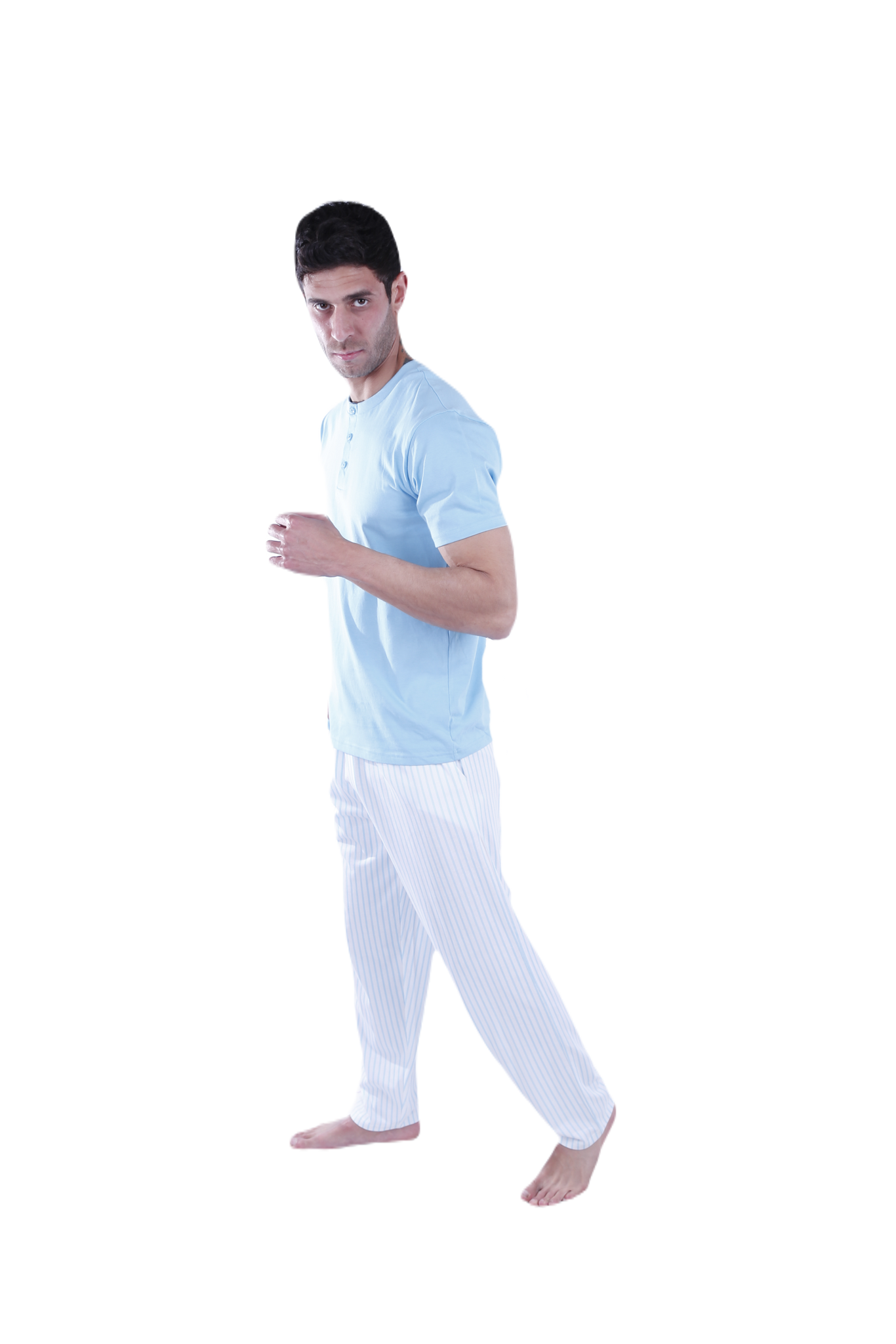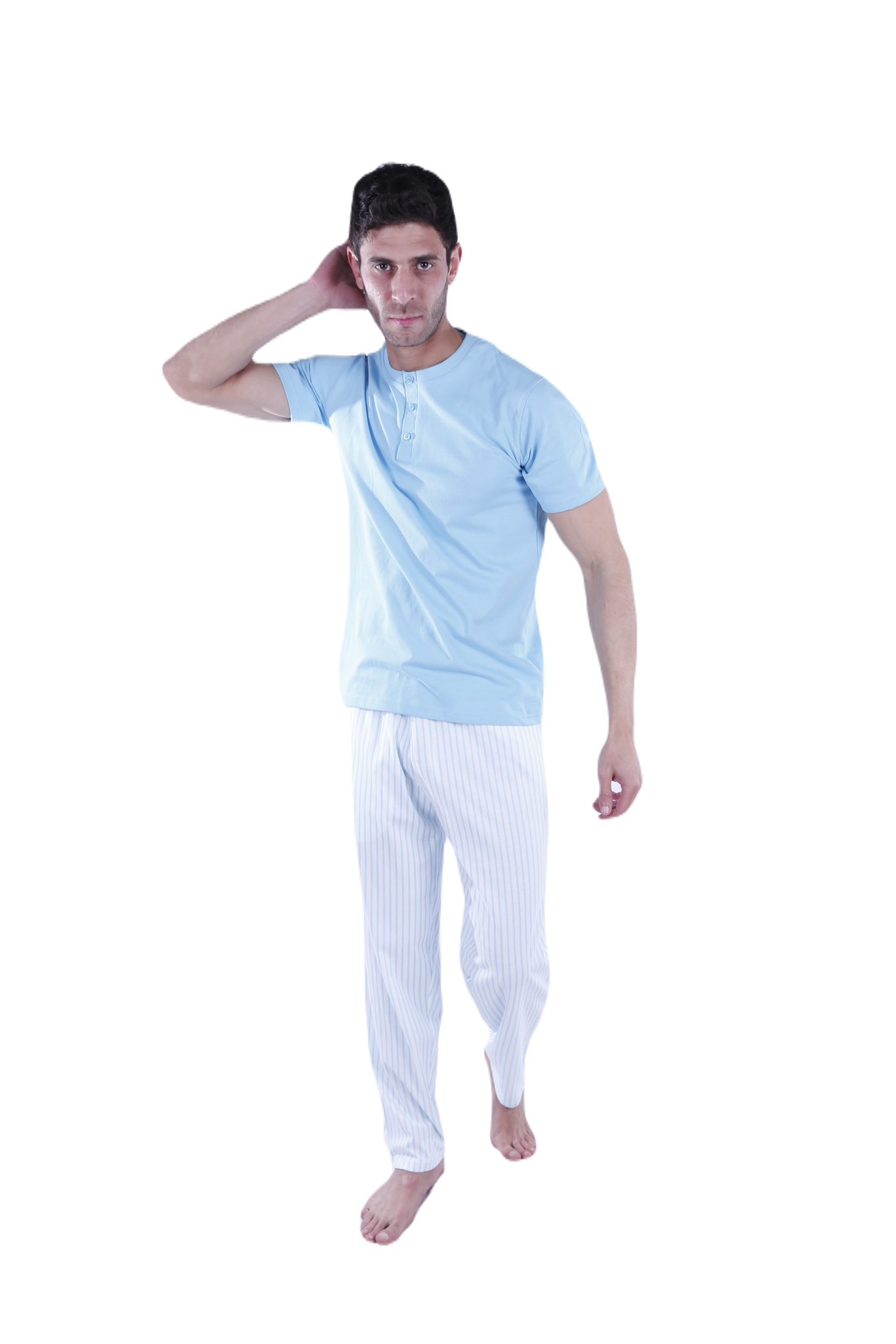 Stay comfortable with the Men’s Short Sleeve Pajama with Placket, crafted from 100% Cotton Single Jersey, offering superior softness and breathability for a relaxing sleep.