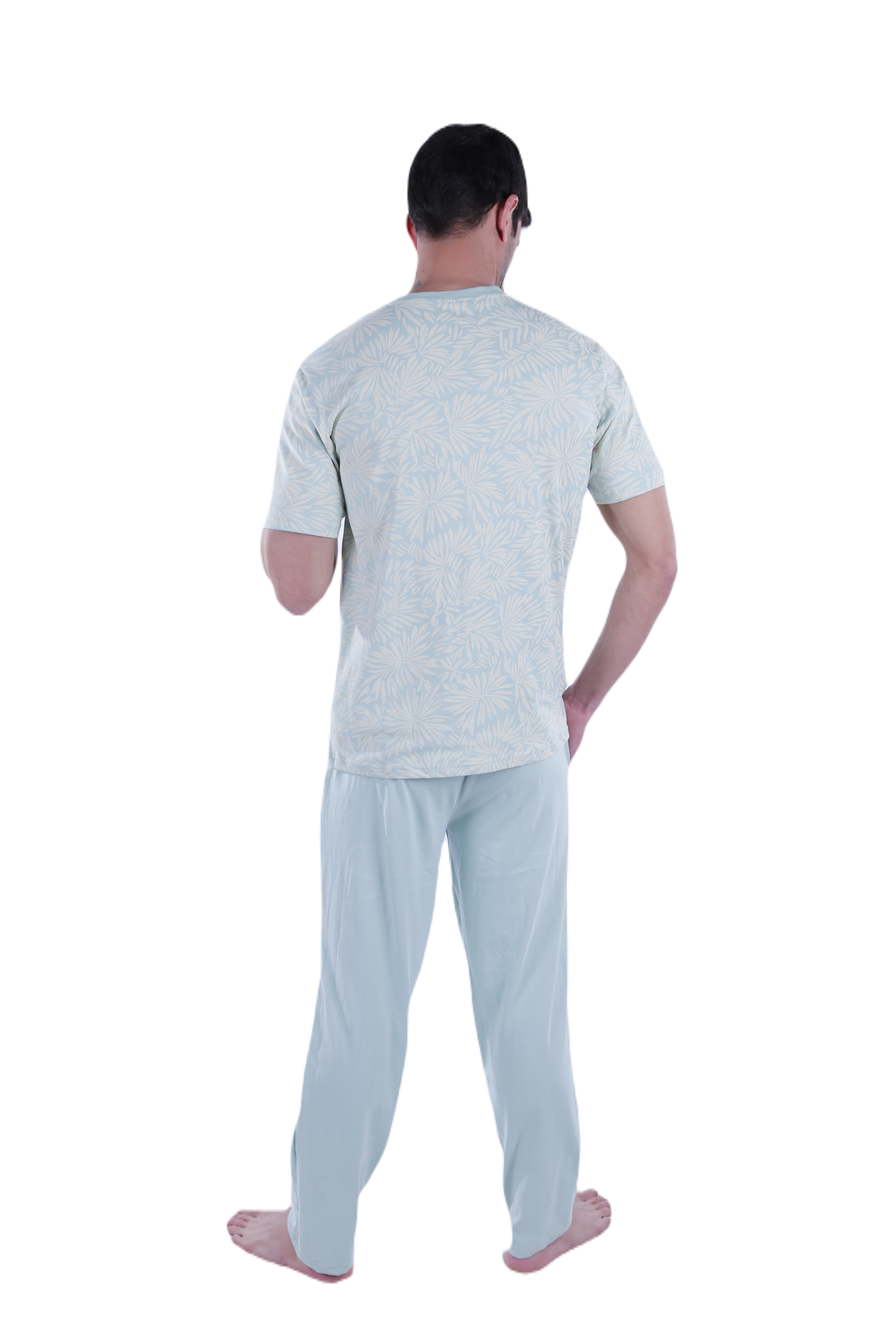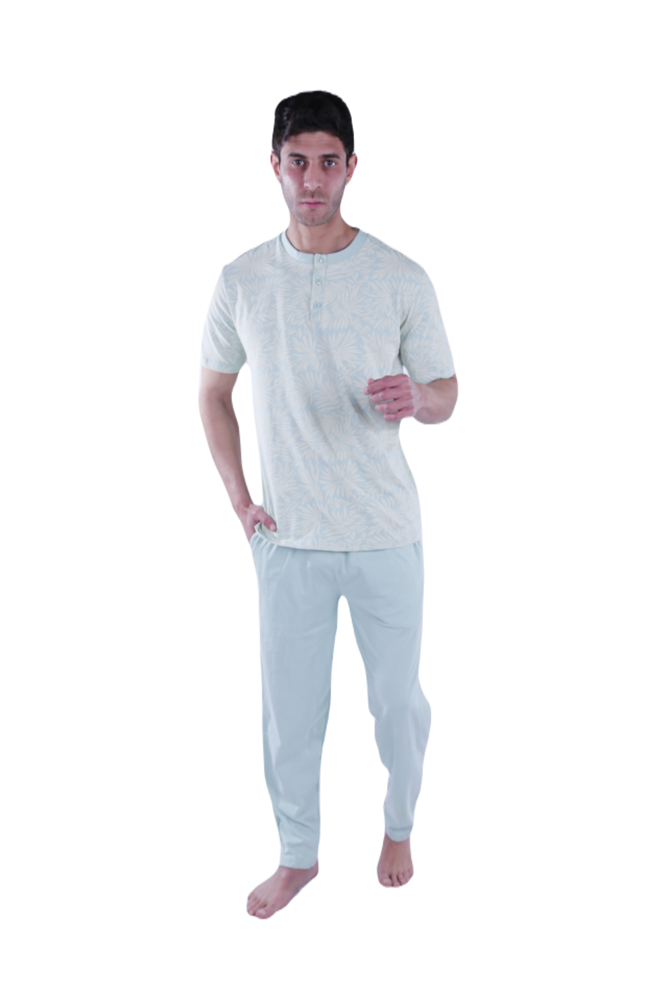 Men Short Sleeve Pajama with Placket - White Flower