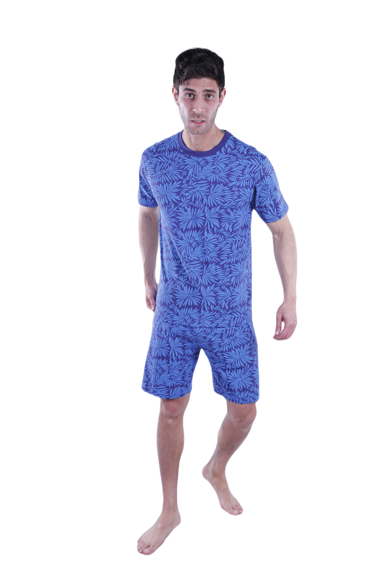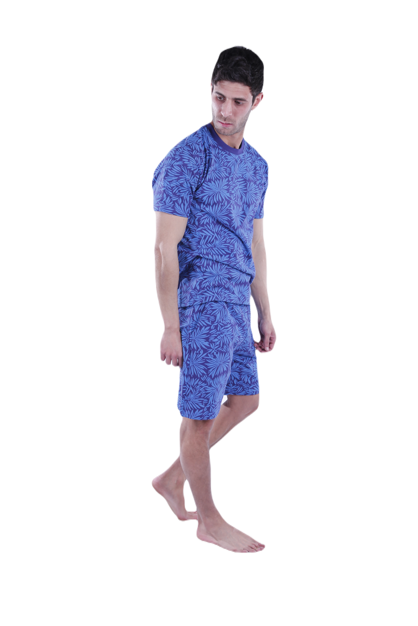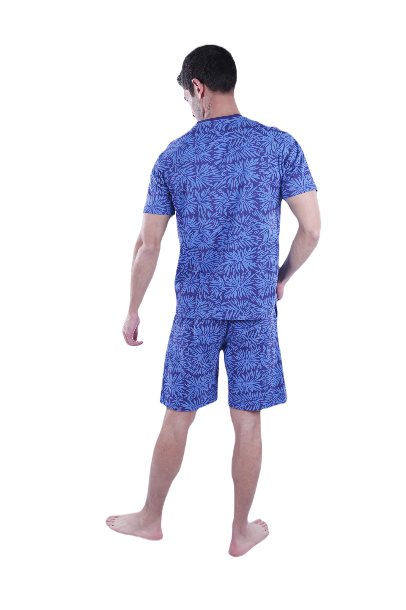 Men Short Sleeve Pajama with Shorts - Blue Depths Flower