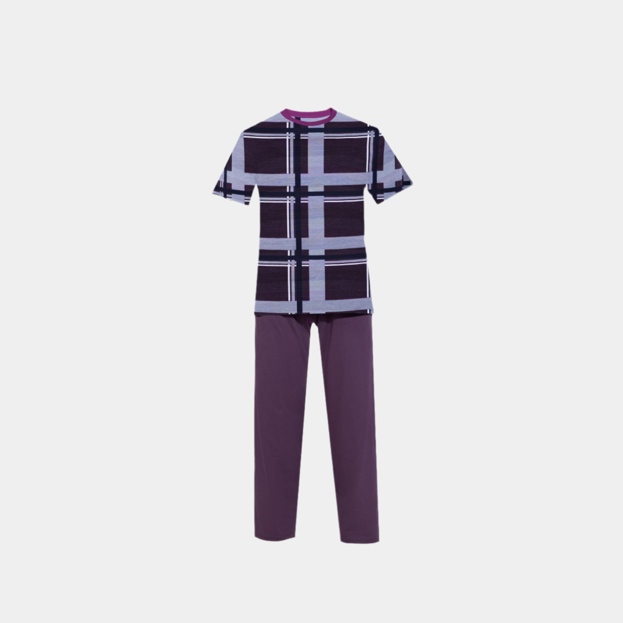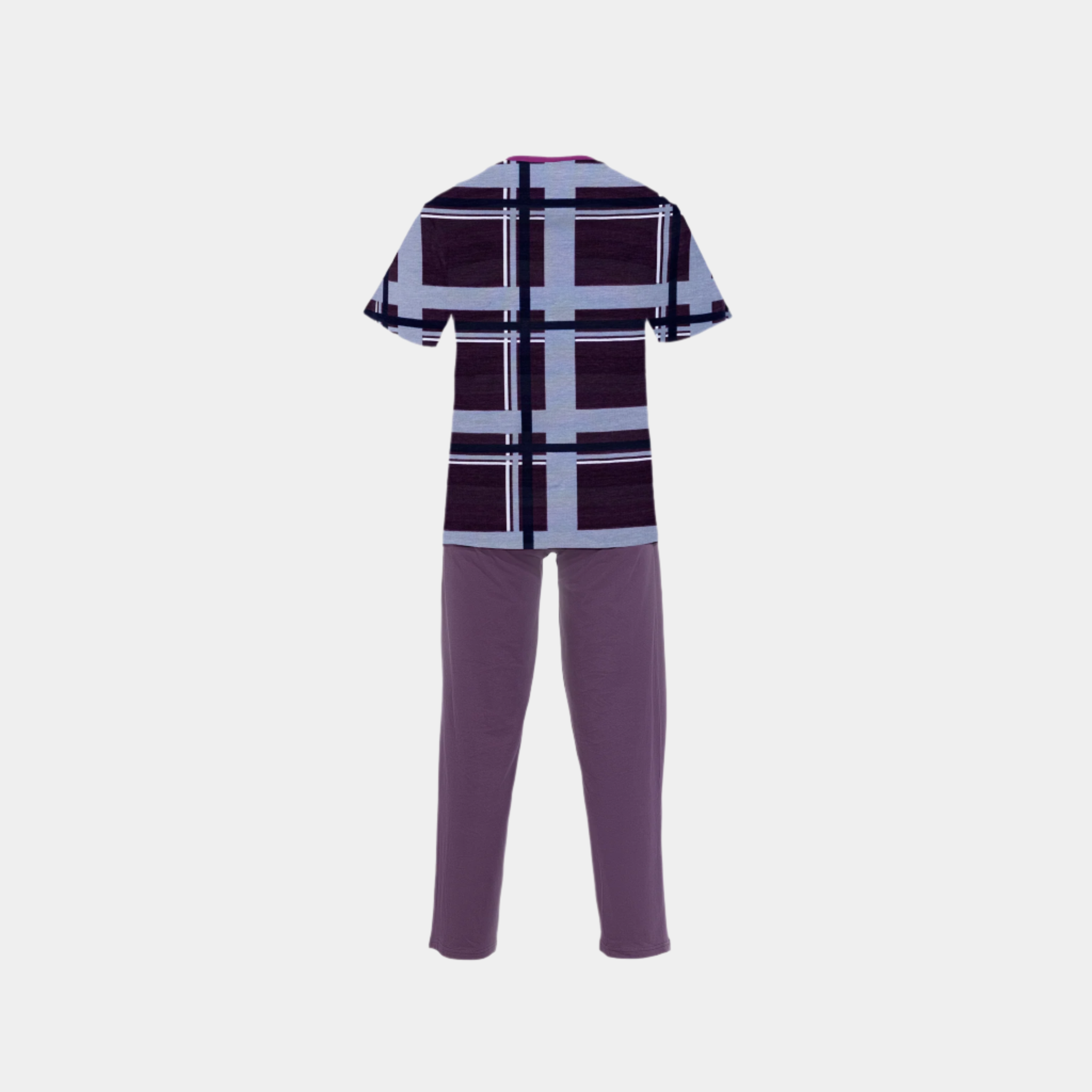 The burgundy plaids add a touch of elegance and sophistication, making this pajama set not just a homewear essential but a style statement. The short sleeves and relaxed fit offer ease of movement, perfect for unwinding after a long day. Whether you’re enjoying a lazy Sunday morning or winding down after a busy day, this pajama set has got you covered.
