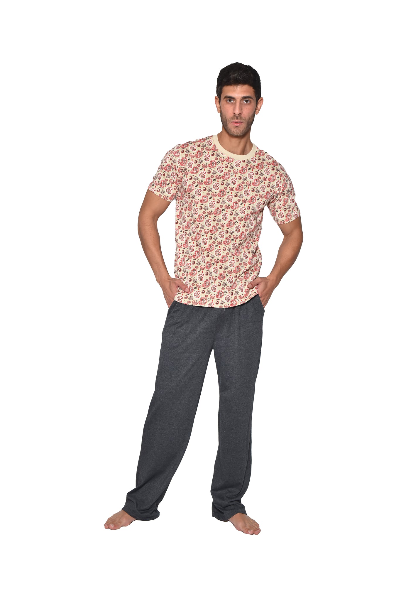 Men Short Sleeve T.SHIRT , , Red Paisely , Single Jersey Cotton