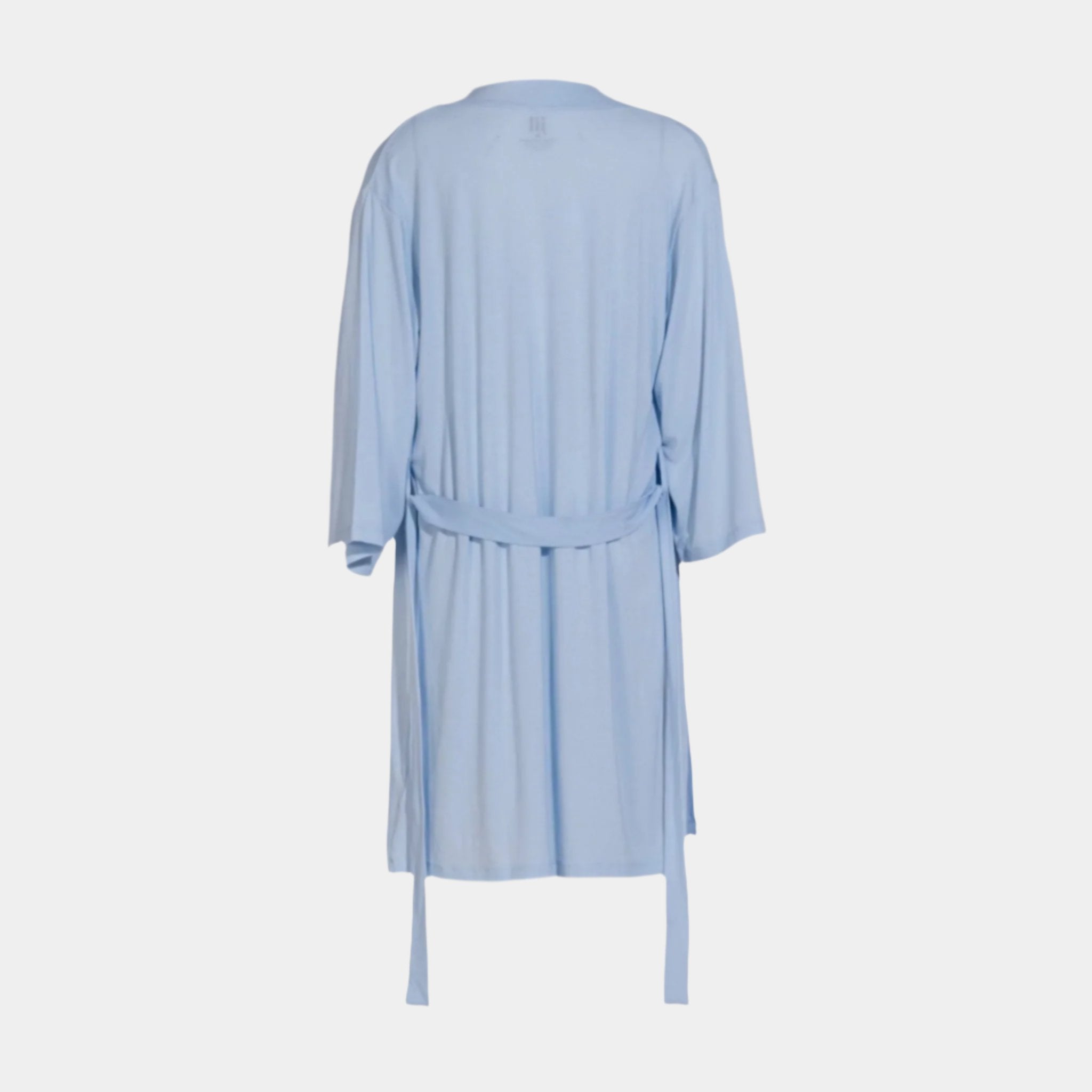 The timeless solid blue hue of this robe exudes sophistication and style, making it a versatile addition to your homewear collection. Whether you're lounging at home, enjoying a lazy Sunday morning, or preparing for a good night's sleep, this robe complements your lifestyle seamlessly. Pair it with your favorite slippers or wear it over your nightwear for an effortlessly chic look.