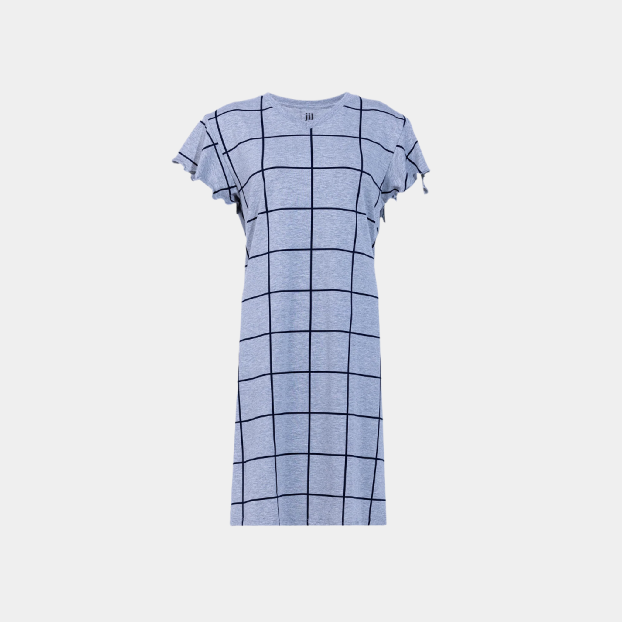 JIL SS FRILL DRESS Grey squares Women 1 Piece, 95% Cotton, 5% EA