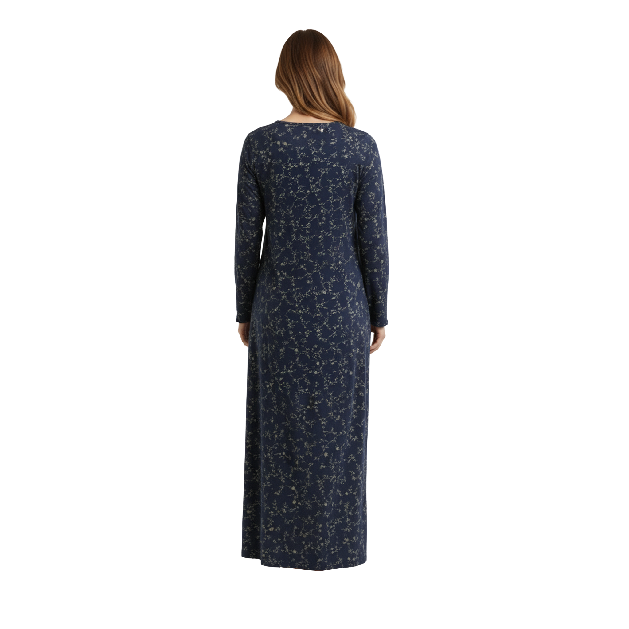 Experience cozy winter comfort with the Women LS Dress in Navy Garden, made from premium 100% cotton interlock brushed fabric for a warm, breathable, and super-soft feel. This long-sleeve dress features a charming floral Navy Garden print that adds elegance and femininity to your winter loungewear. Designed with a relaxed fit that allows easy movement, it’s perfect for home comfort, casual winter days, or cozy evenings.