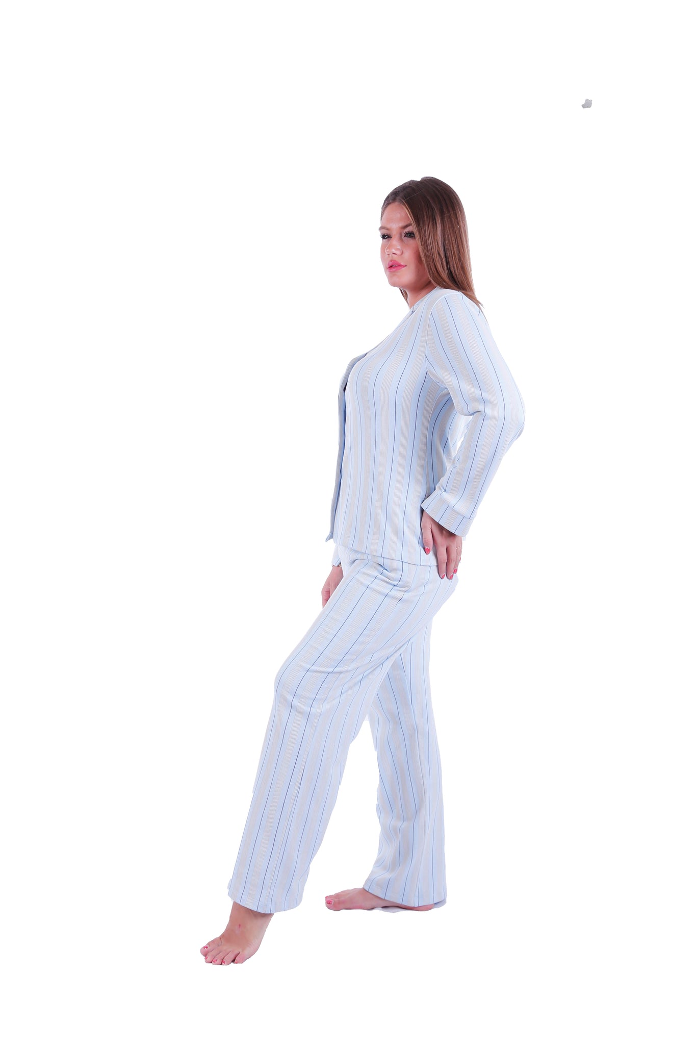 Women LS PAJAMAS WITH BUTTONS