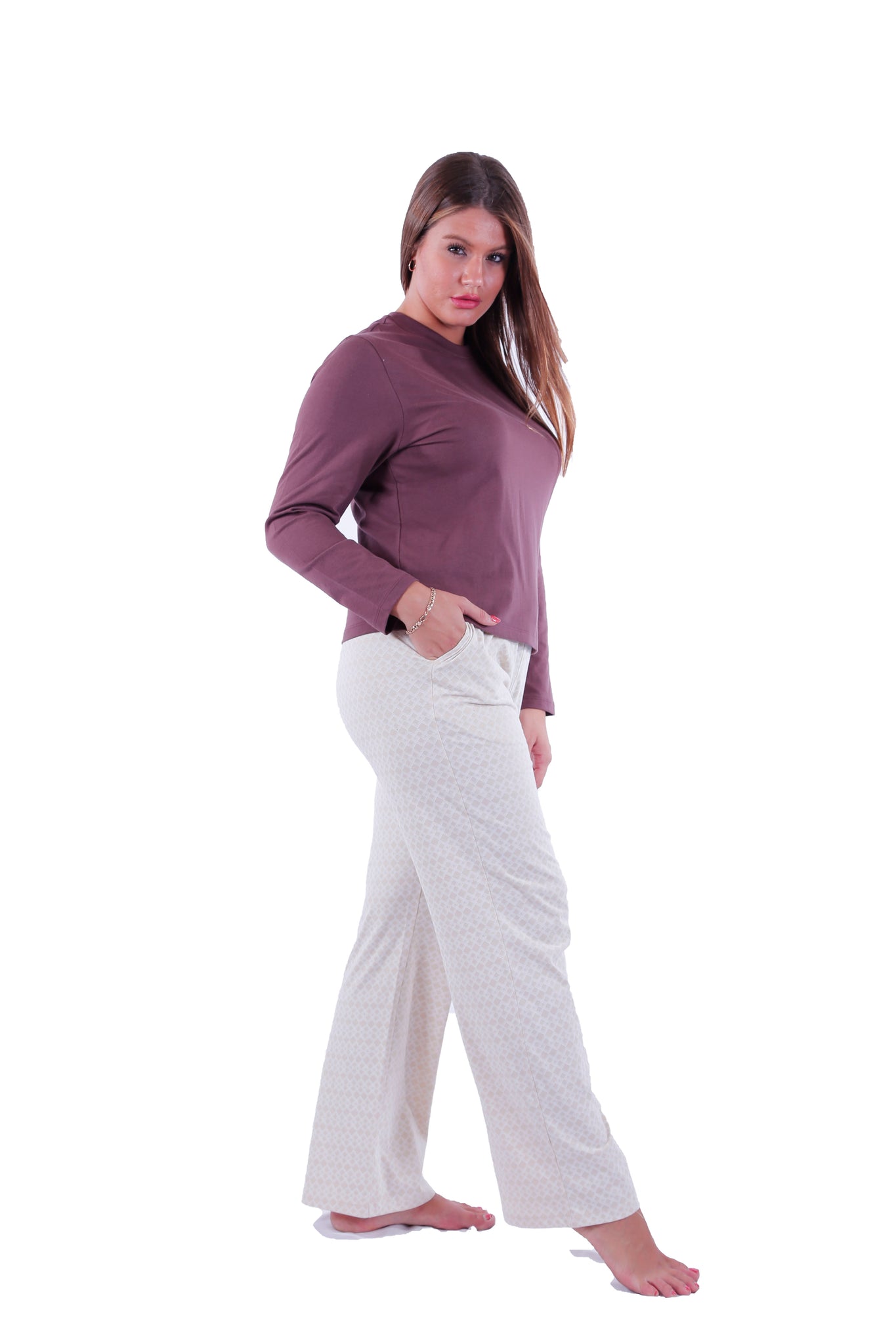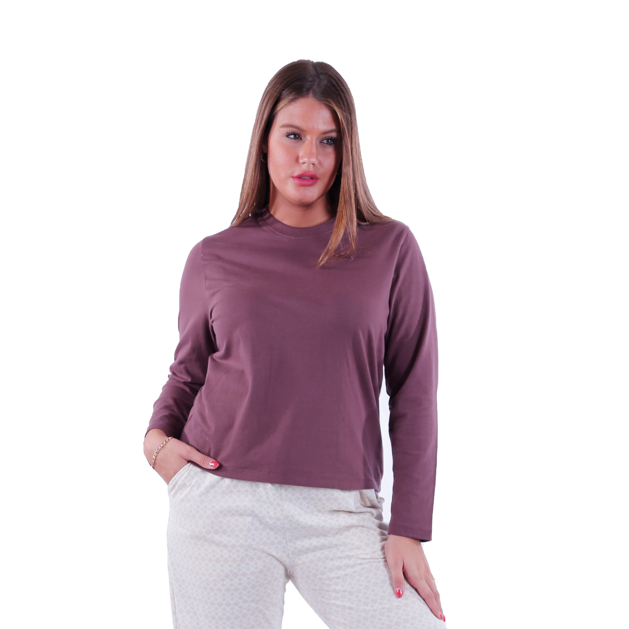 Women LS T.SHIRT ,Bitter Chocolate