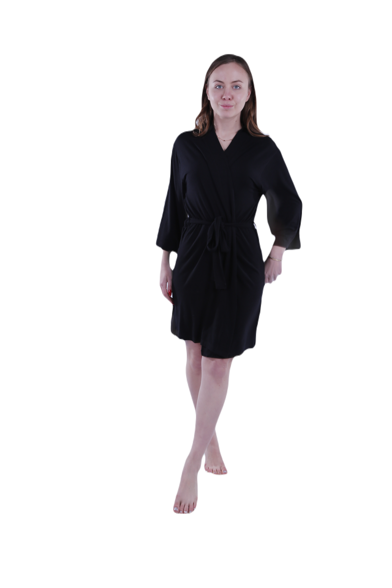 Available in two timeless colors: Blue Depths and Moonless Night, providing an elegant look for lounging or layering over sleepwear. The practical and cozy design makes it an essential wardrobe piece.