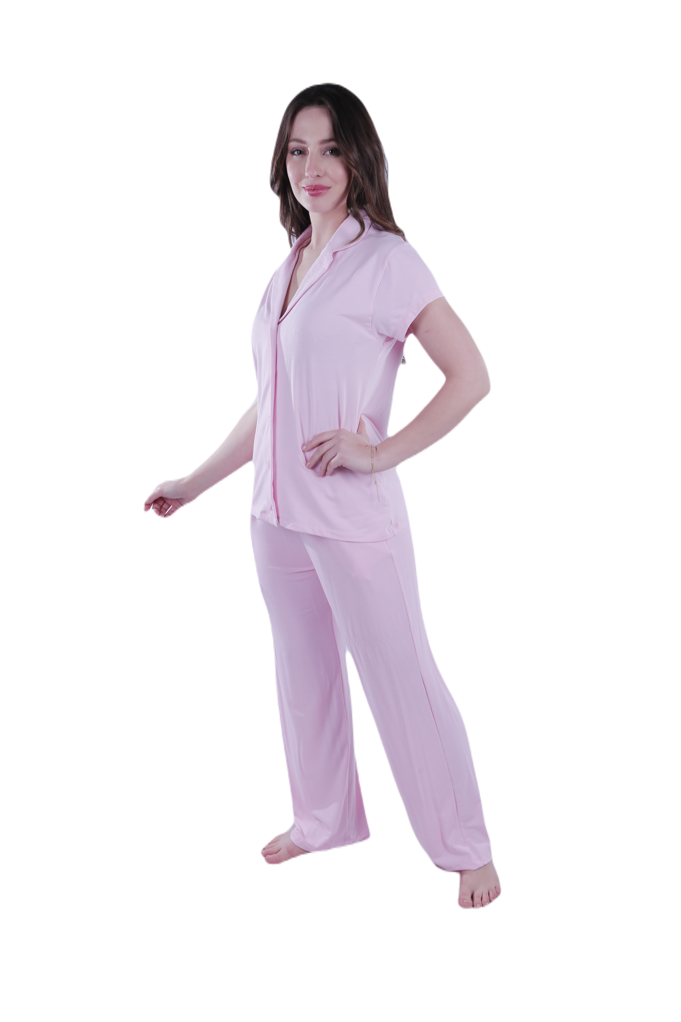 Available in three elegant colors: Ballerina, Moonless Night, and Paradise Pink, making it the perfect choice for a chic and feminine loungewear look. The modern design with a relaxed-fit pant makes it ideal for sleeping or lounging at home in style.