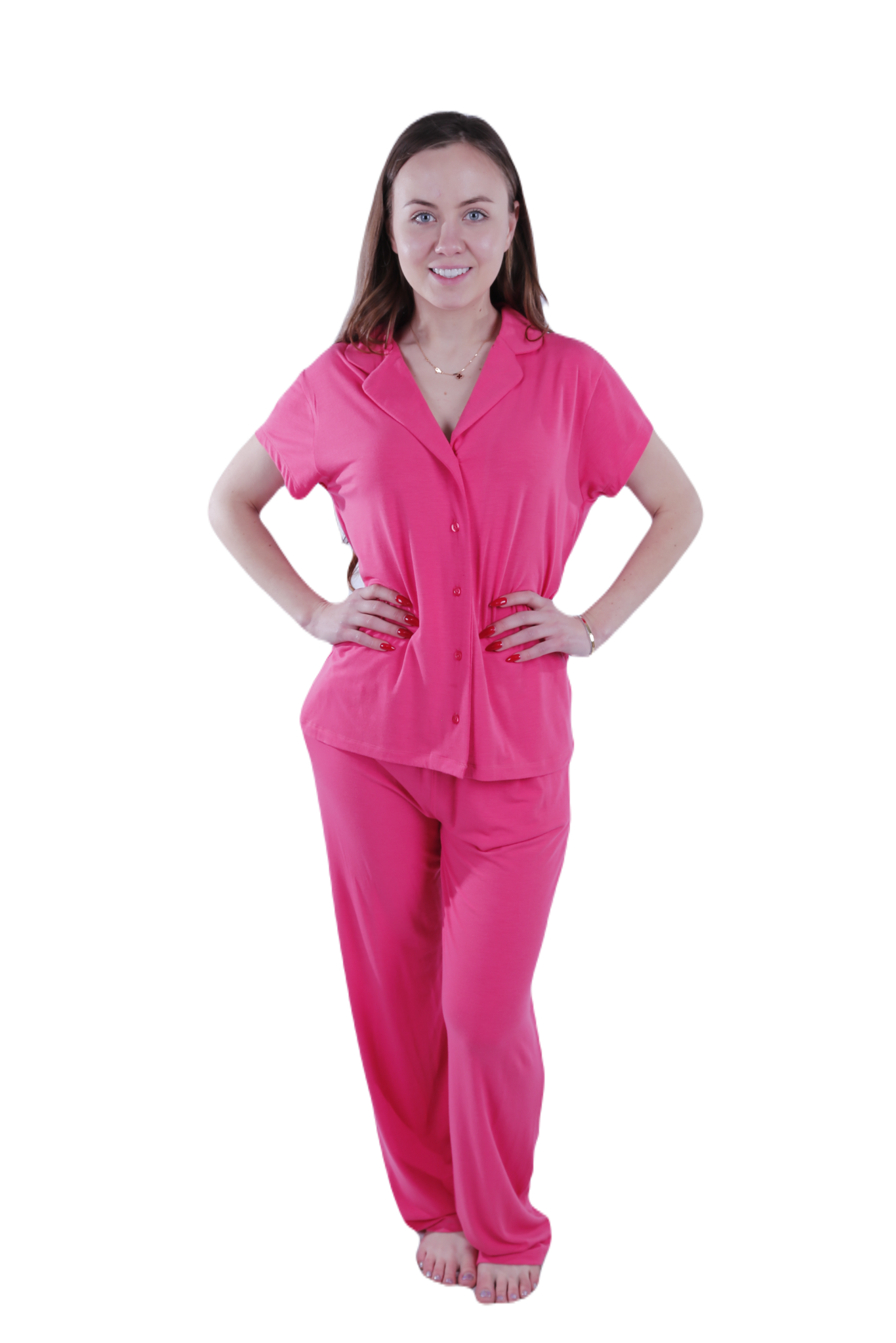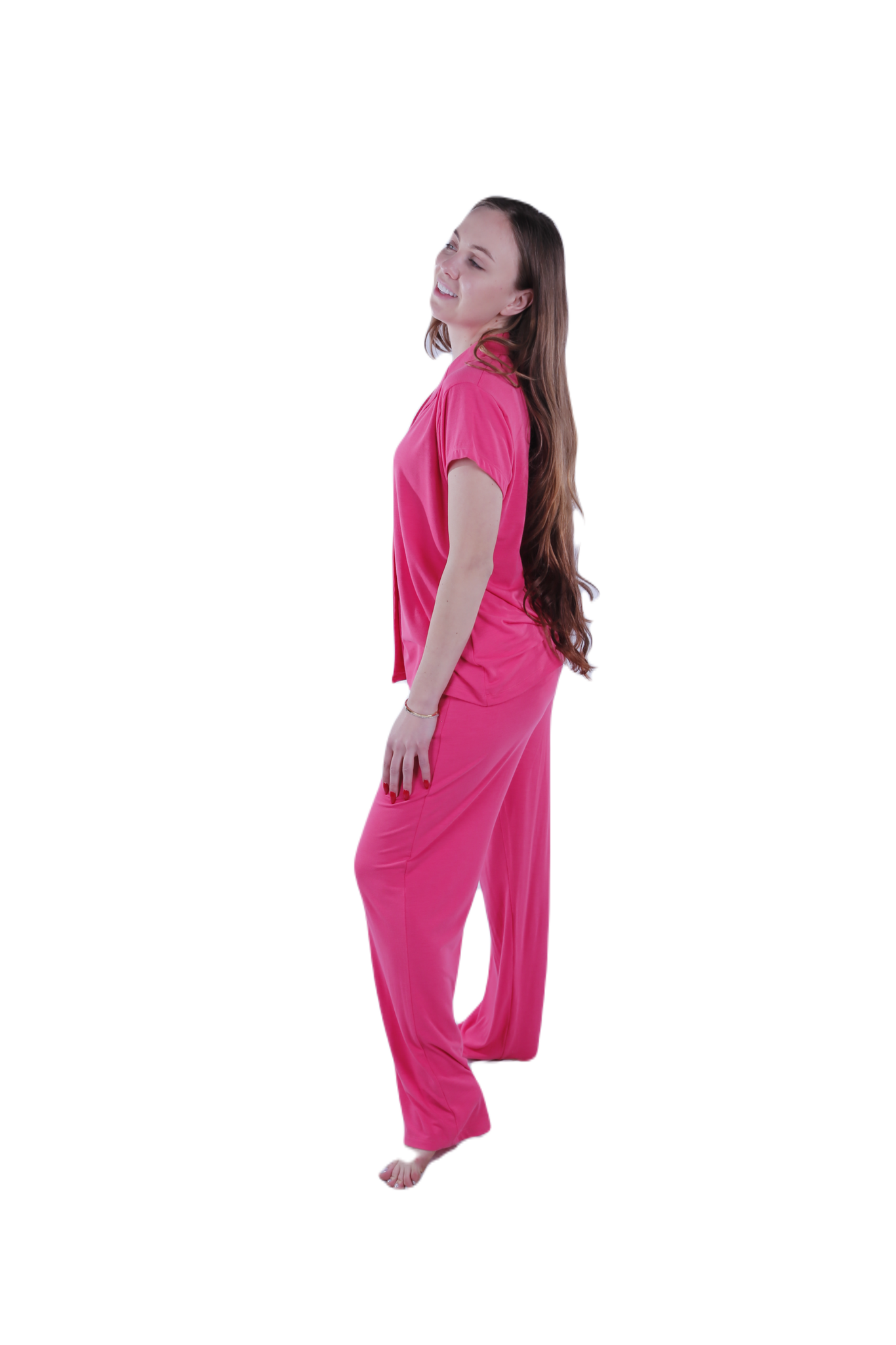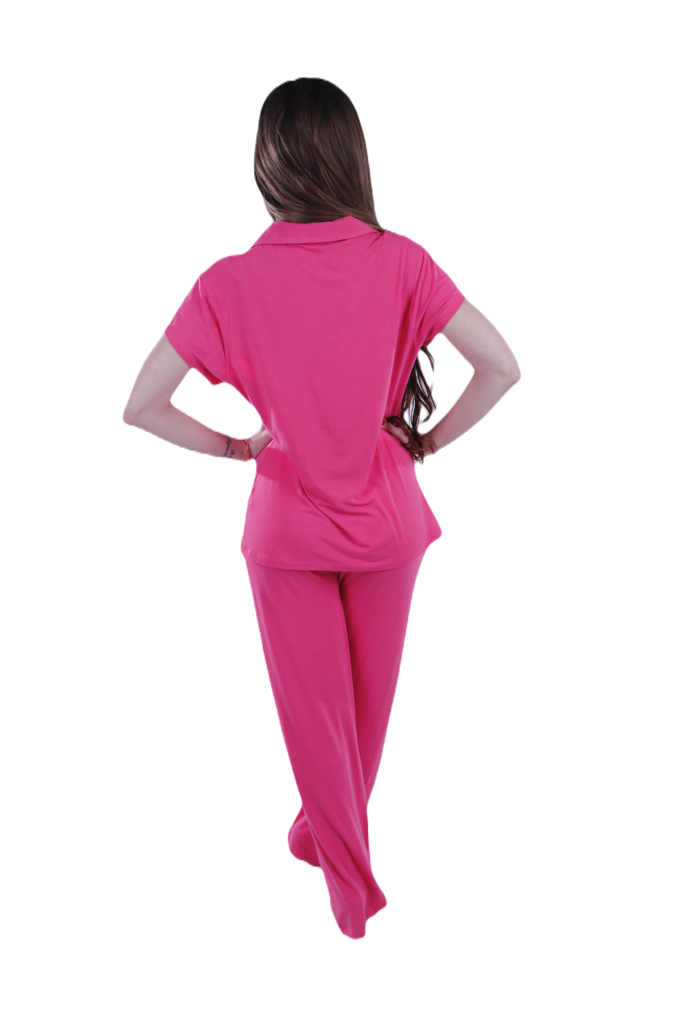 Women Short Sleeve Label Pajama with Pants - Paradise Pink
