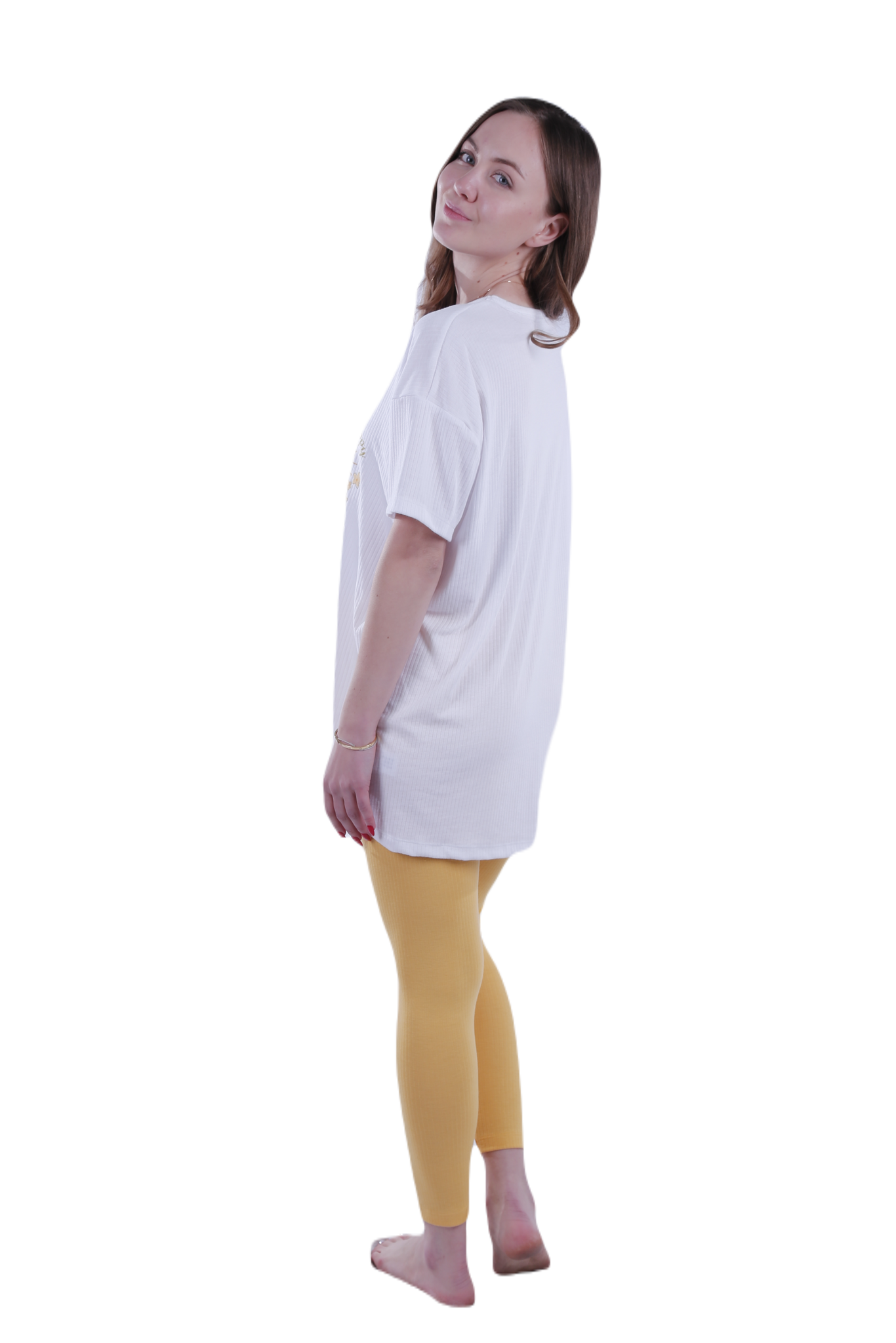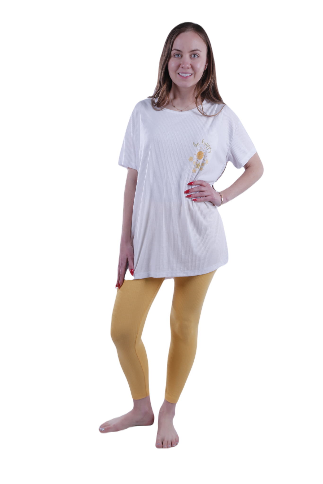 Enjoy unmatched comfort and elegance with the Women’s Short Sleeve Pajama with Legging, crafted from a blend of Viscose, Melange, and Lycra for a soft feel and lasting flexibility.