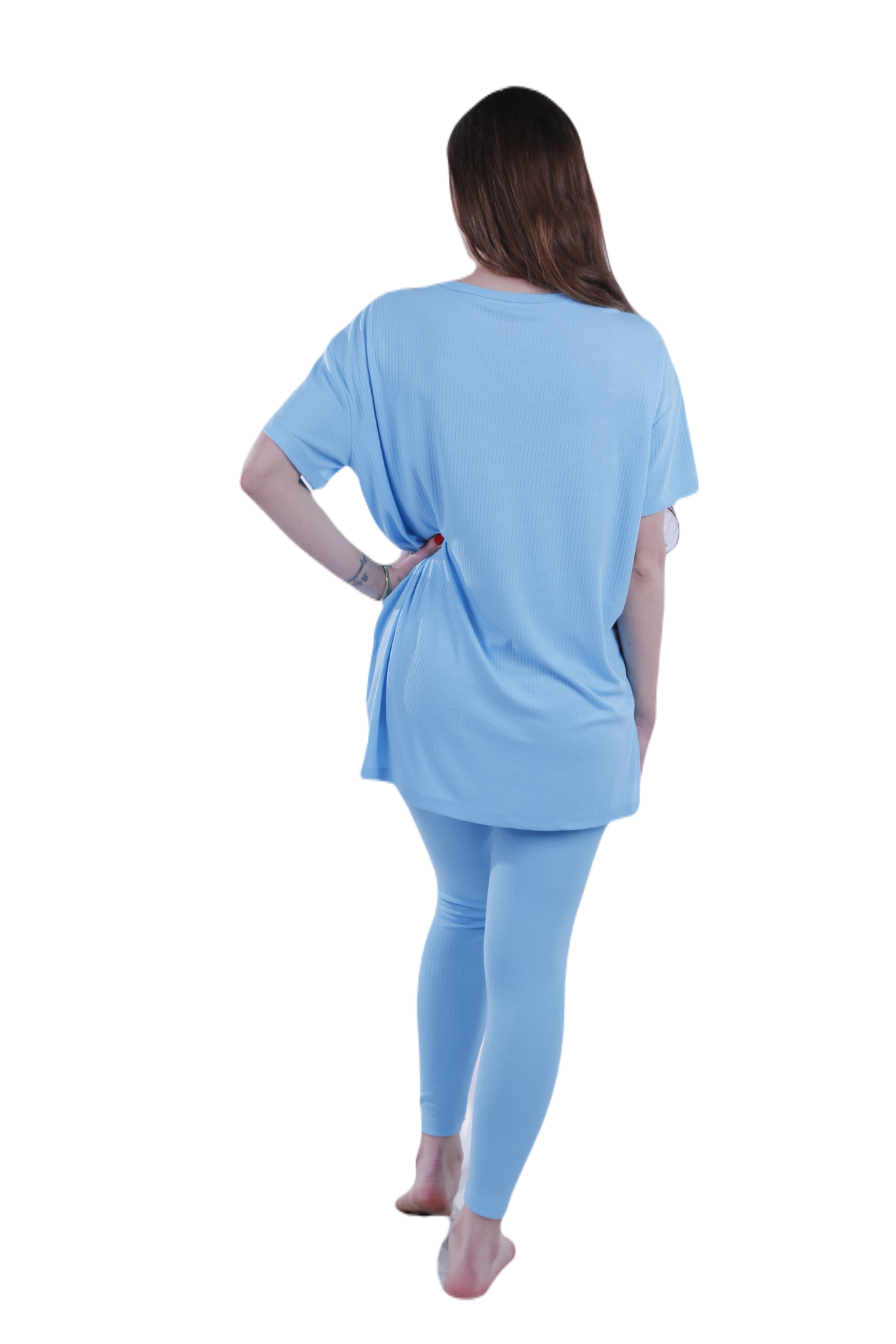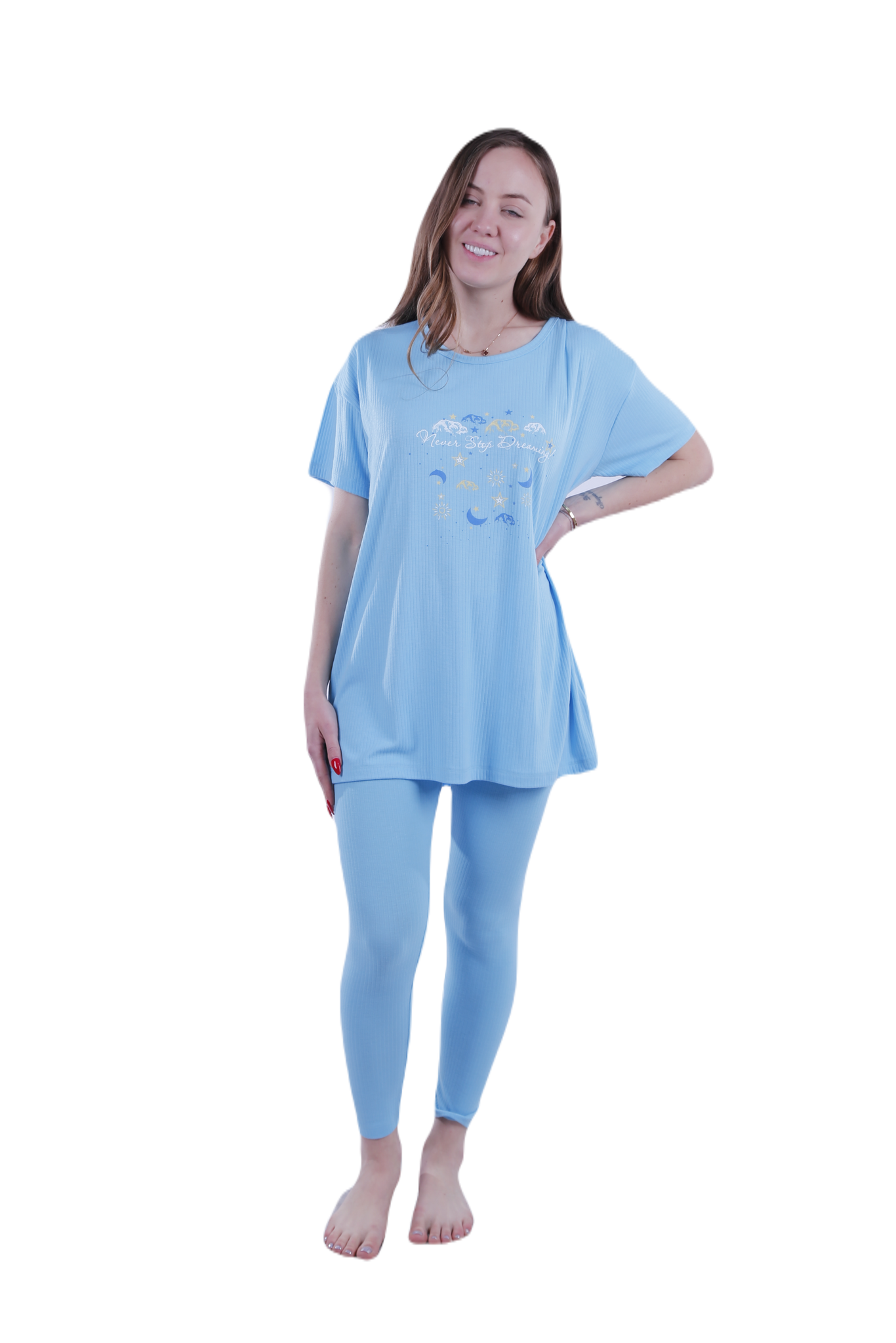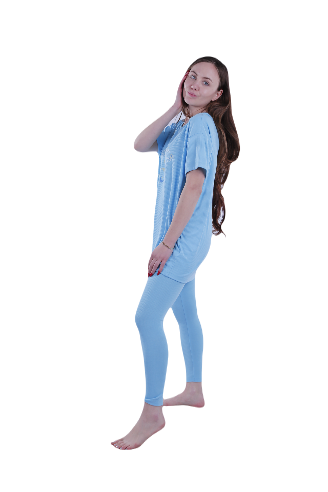 Women Short Sleeve Pajama with Legging - Cabana Blue