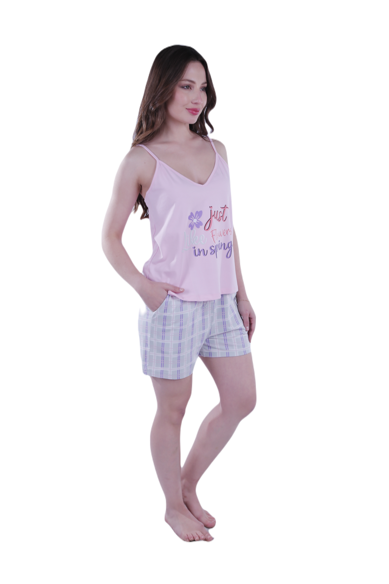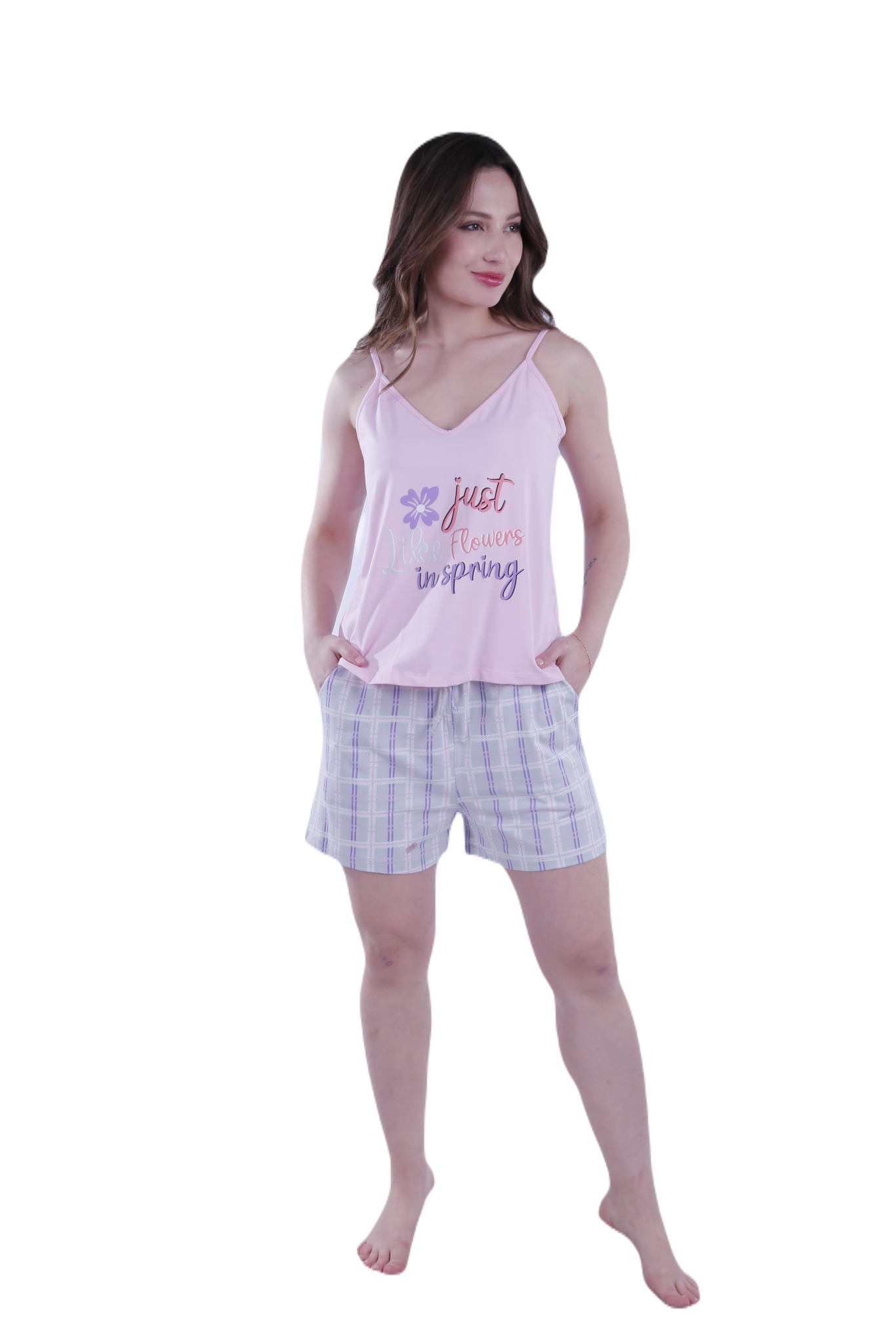 Available in two feminine shades: Blue Curacao and Ballerina, making it the perfect choice for elegant loungewear. This pajama set includes both shorts and pants, offering versatility for all seasons while ensuring maximum comfort.