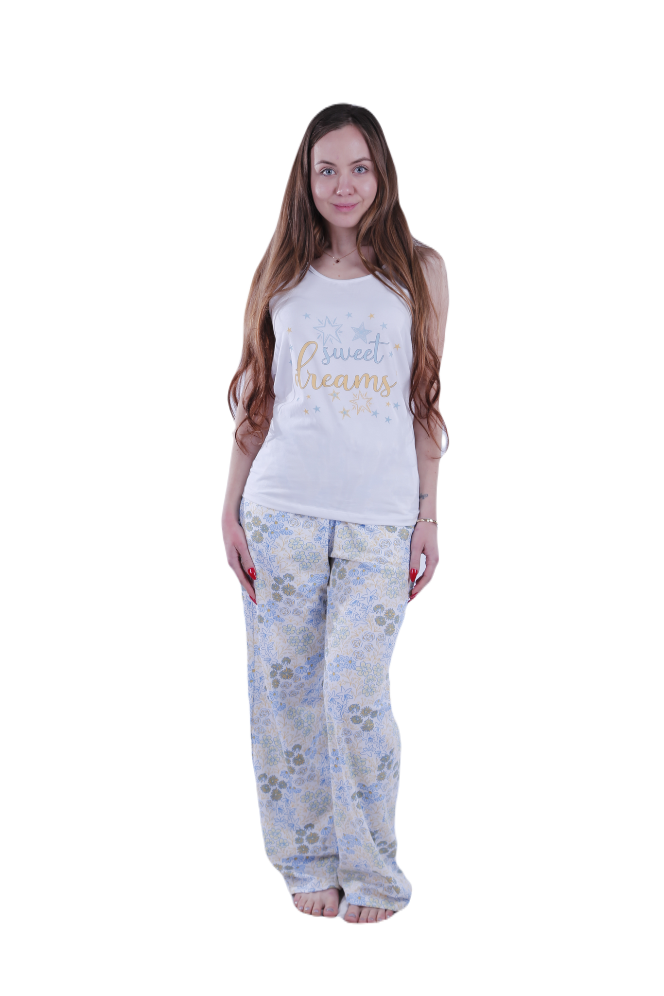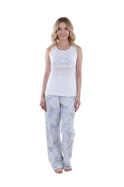Experience unmatched comfort and elegance with the Women’s Tank Top Pajama, featuring a cotton-lycra blend top and 100% cotton pants, ensuring breathability and lasting softness.